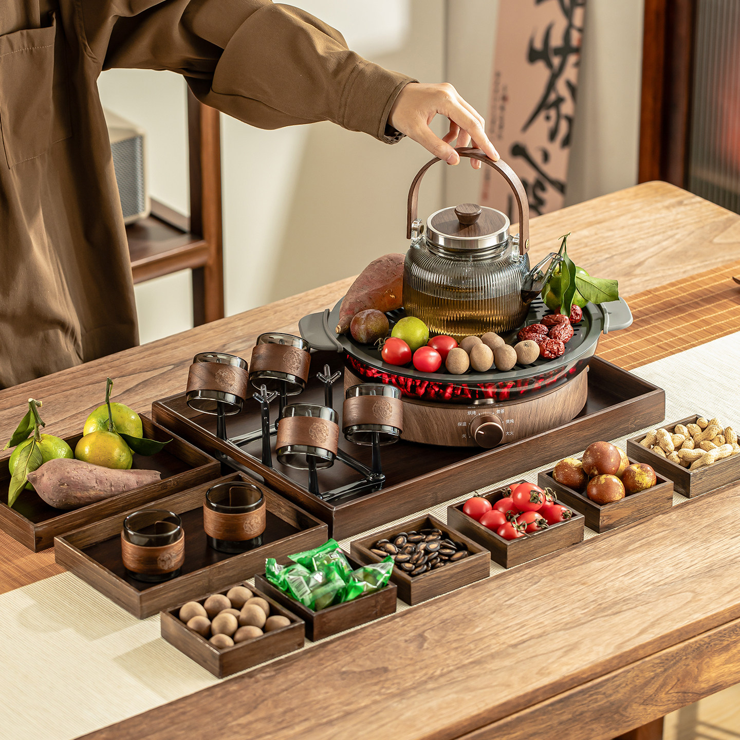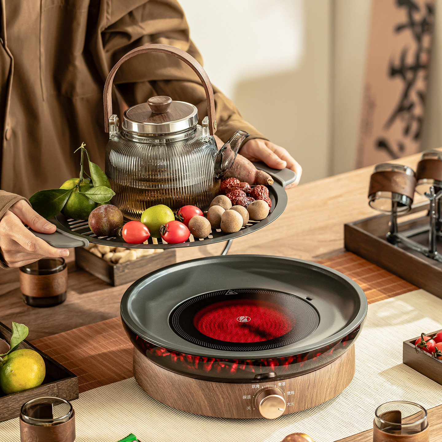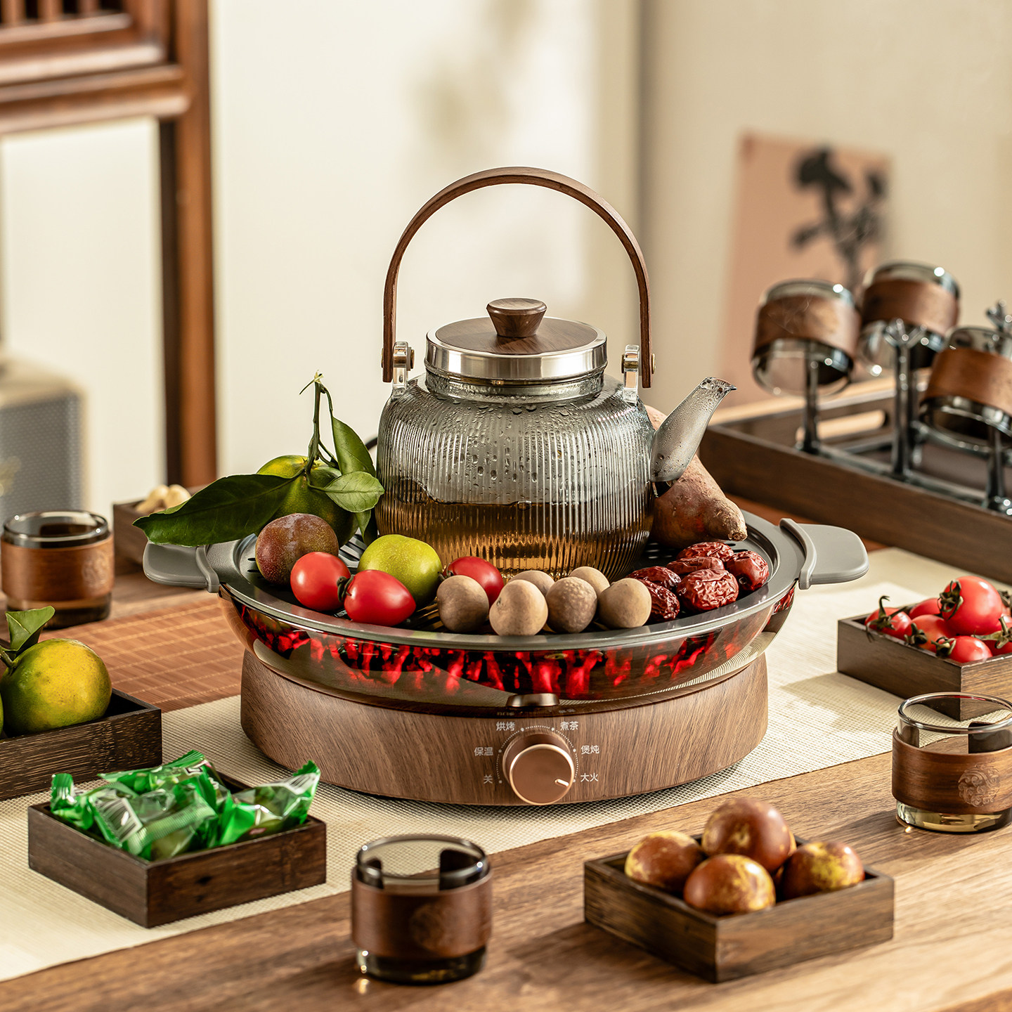 📚 瓷牌茗室内围炉煮茶玻璃煮茶壶电陶炉多功能围聚茶炉家用花茶茶壶