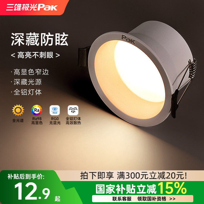 📚 三雄极光防眩筒灯嵌入式75mm家用窄边过道灯深杯客厅无主灯天花灯