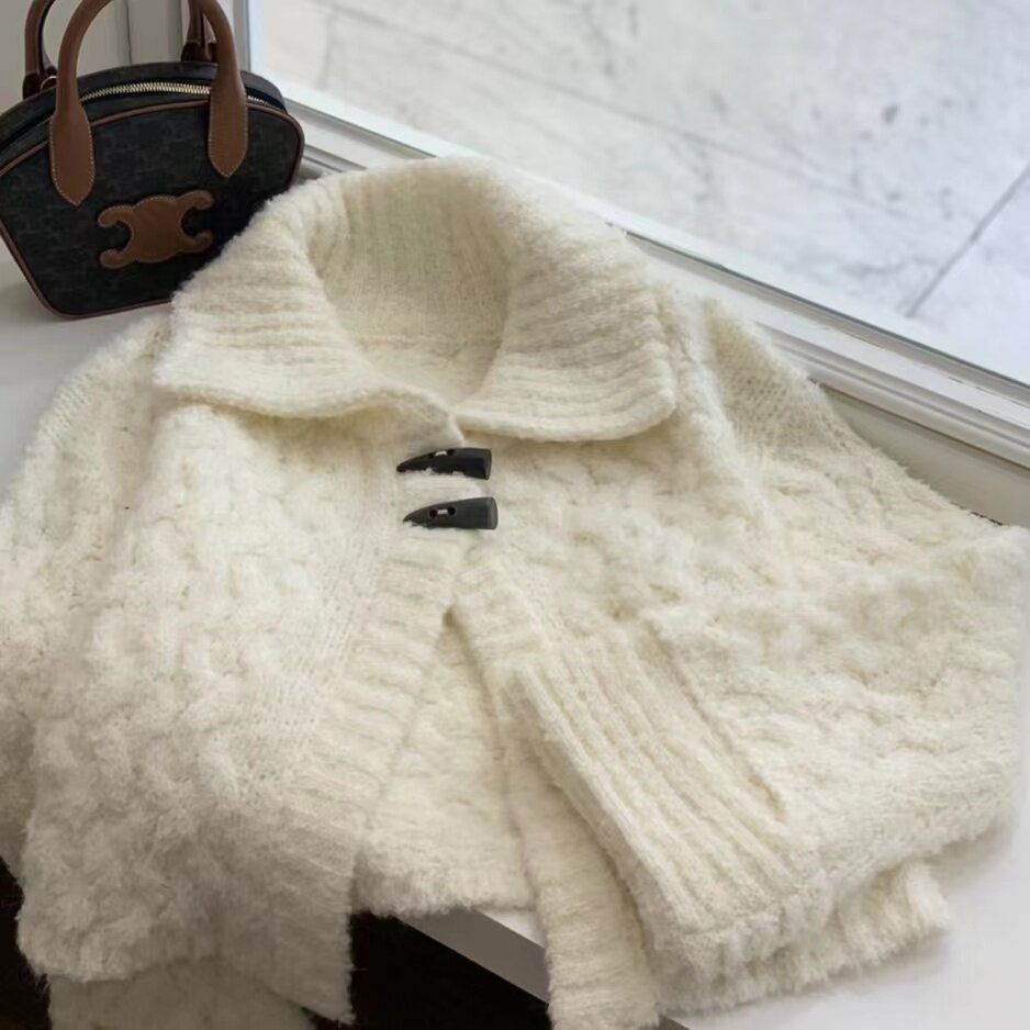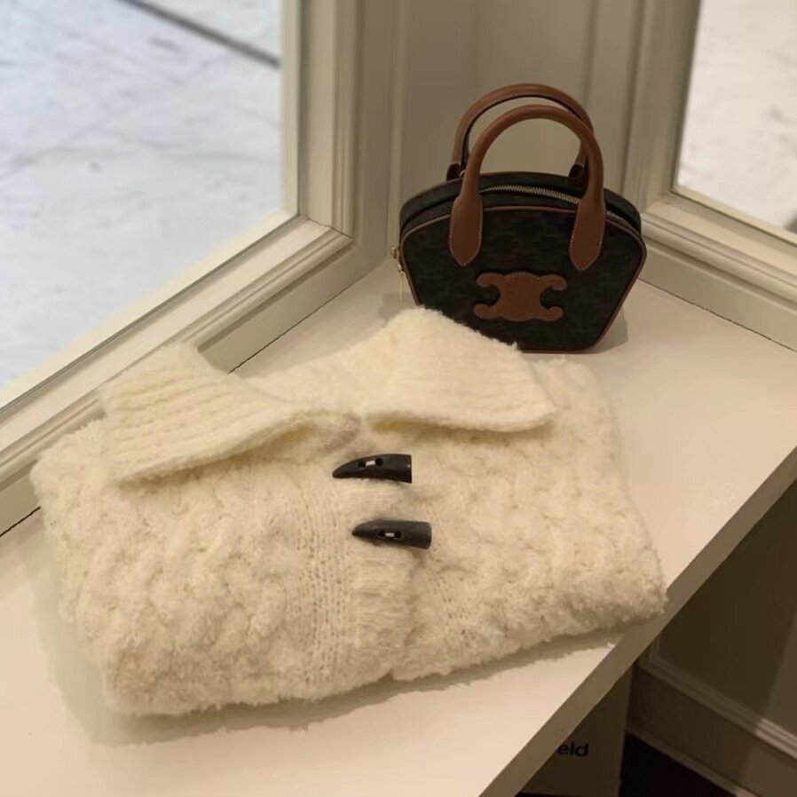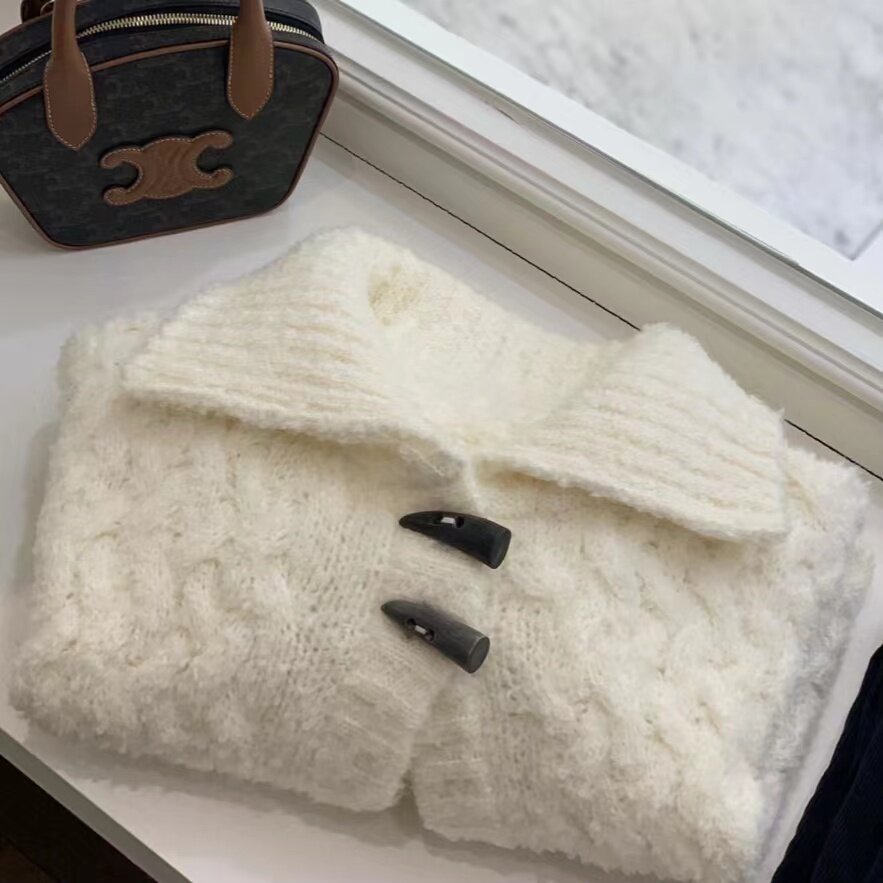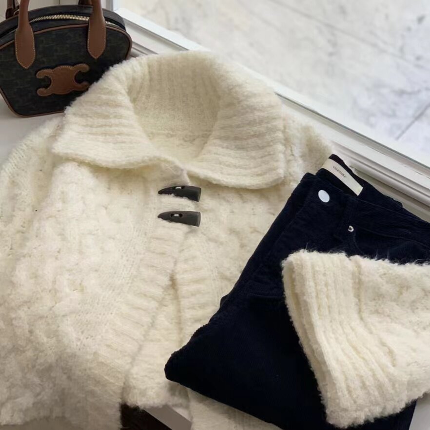 📚 韩国代购vegetable牛角扣毛衣开衫软糯翻领宽松短款羊毛针织衫女