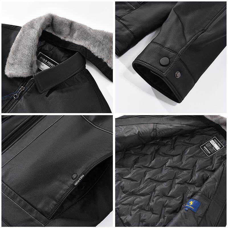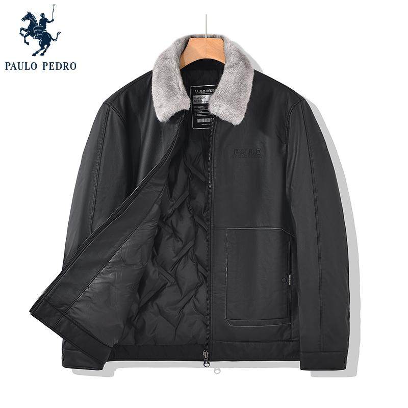 📚 保罗彼得冬季新款男可拆卸毛领羽绒服PU保暖夹克外套QYDD75890