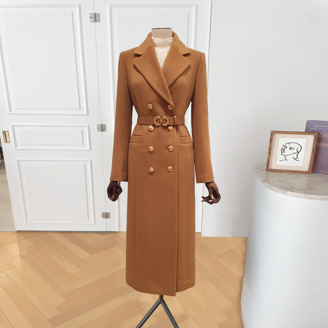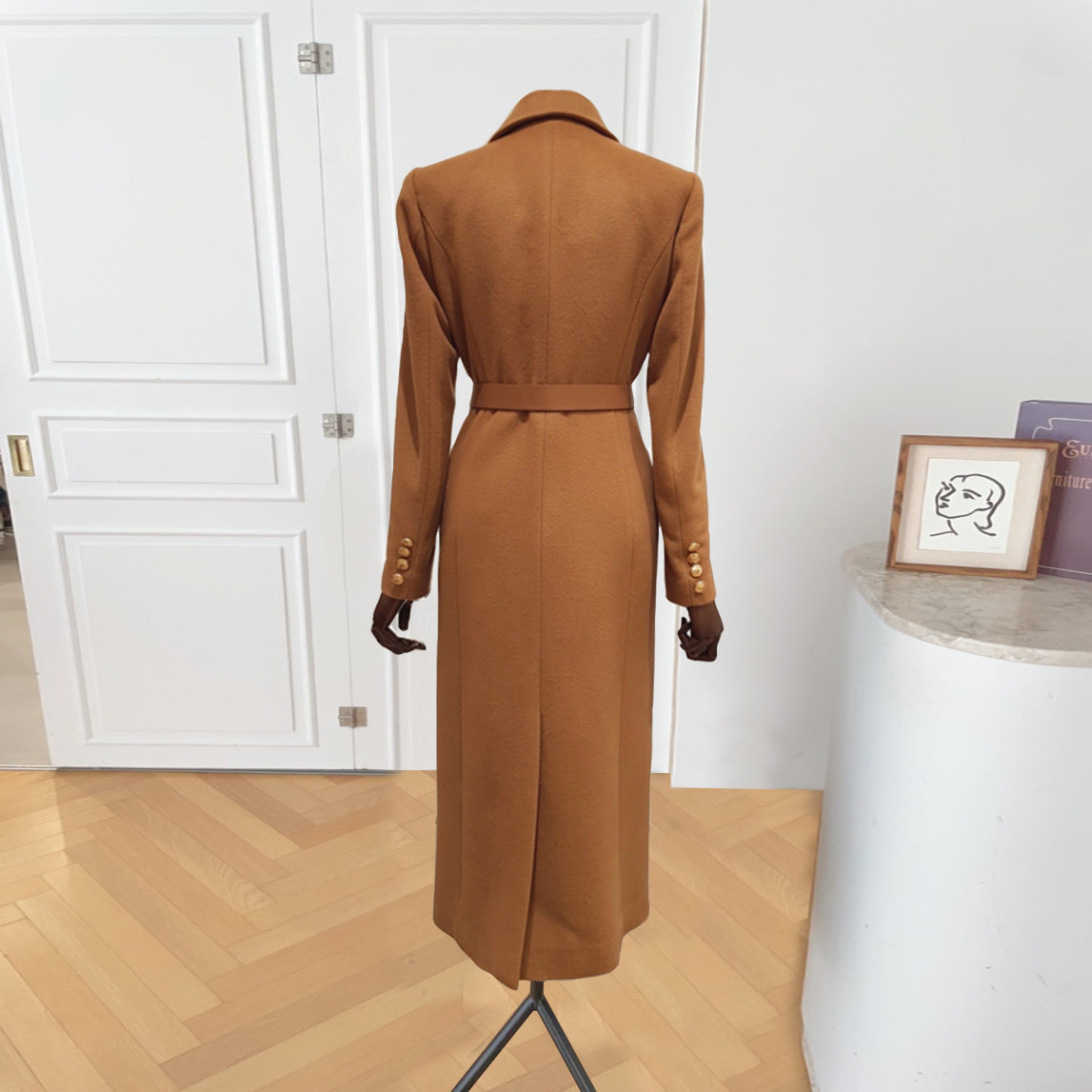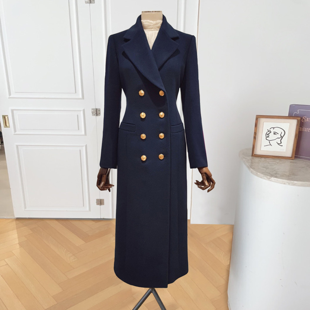 📚 西装式呢子大衣女长款2025秋冬季新款赫本风斜纹修身显瘦毛呢外套