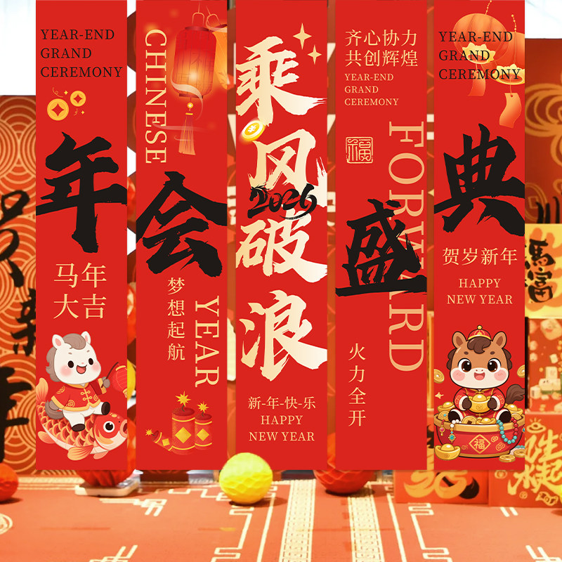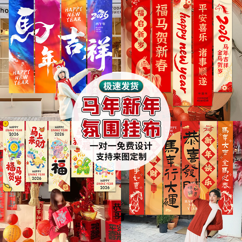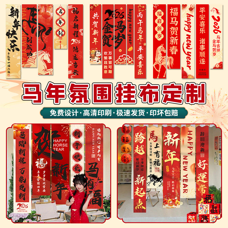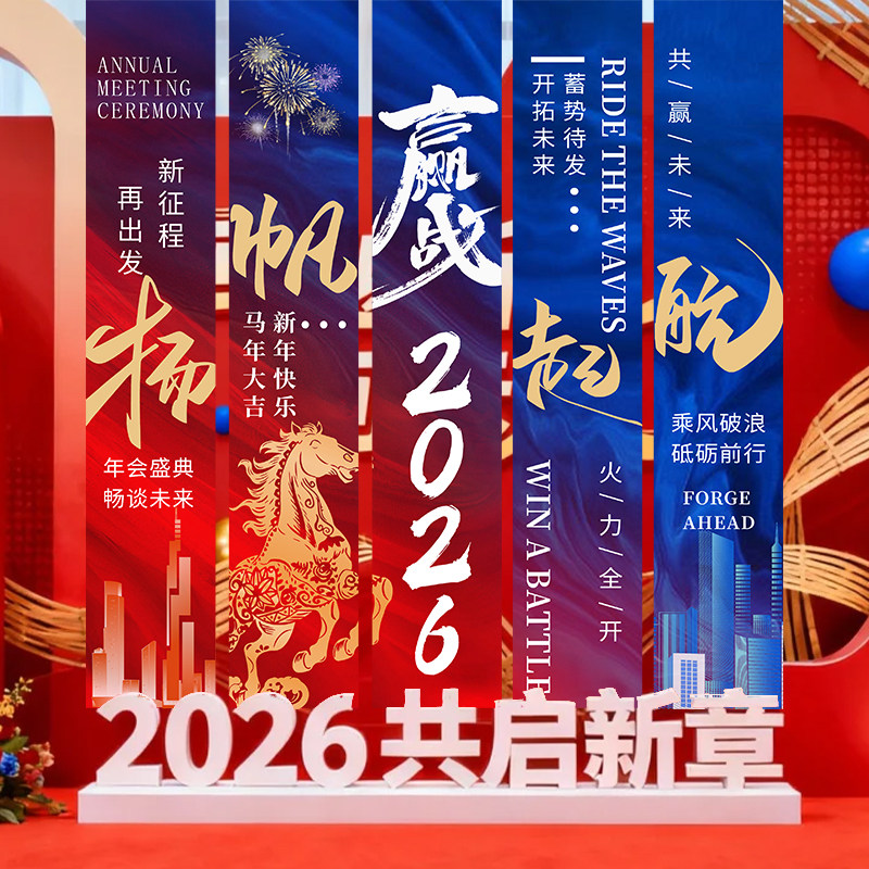 📚 2026马年条幅定制商场活动背景竖拉条装饰公司开门红宣传横幅设计周年庆氛围感旗帜布置新年春节晚会挂布定做