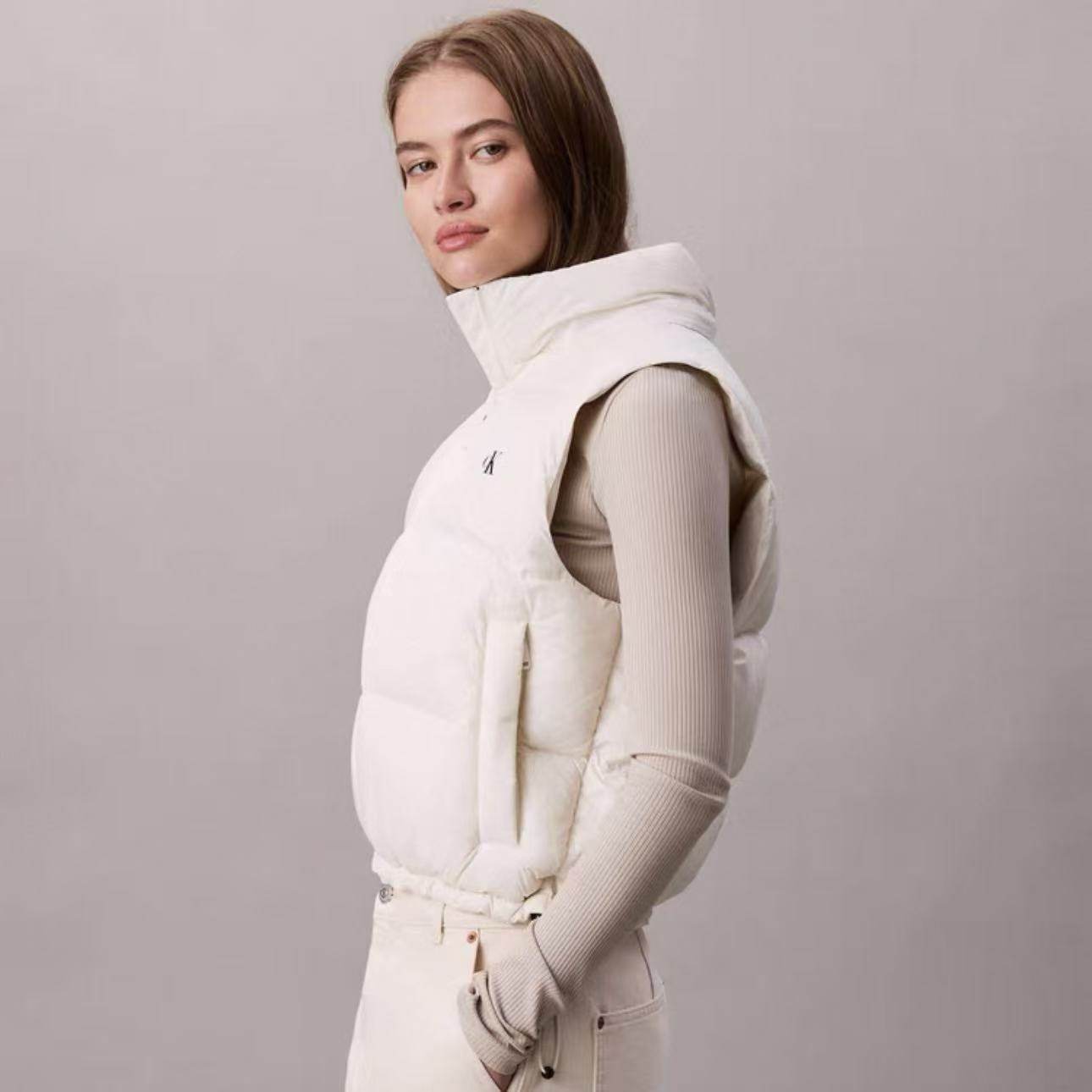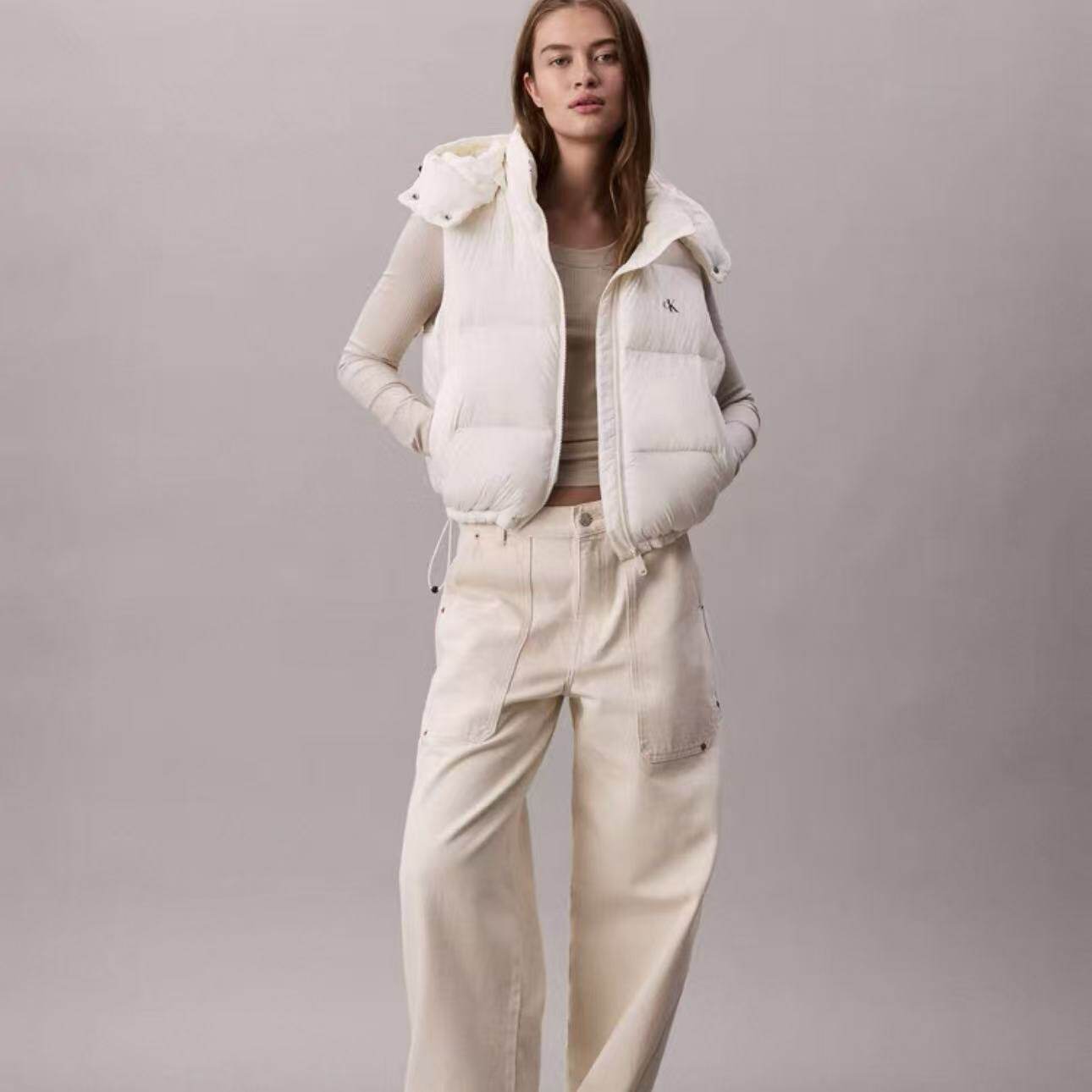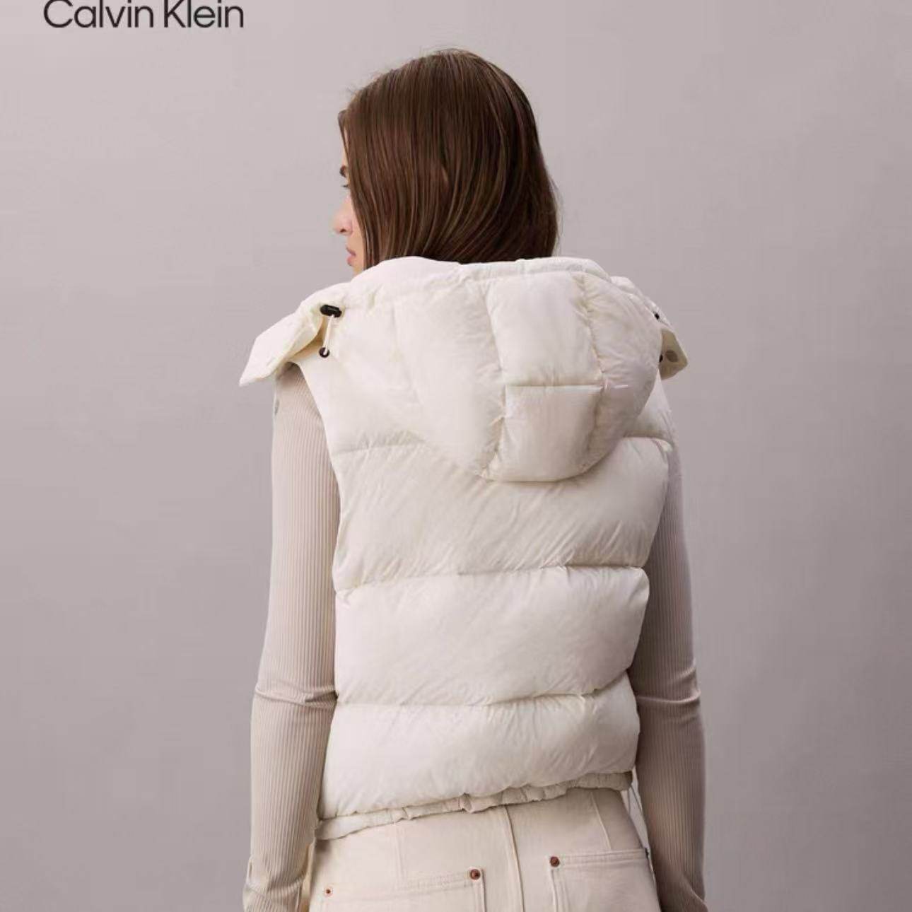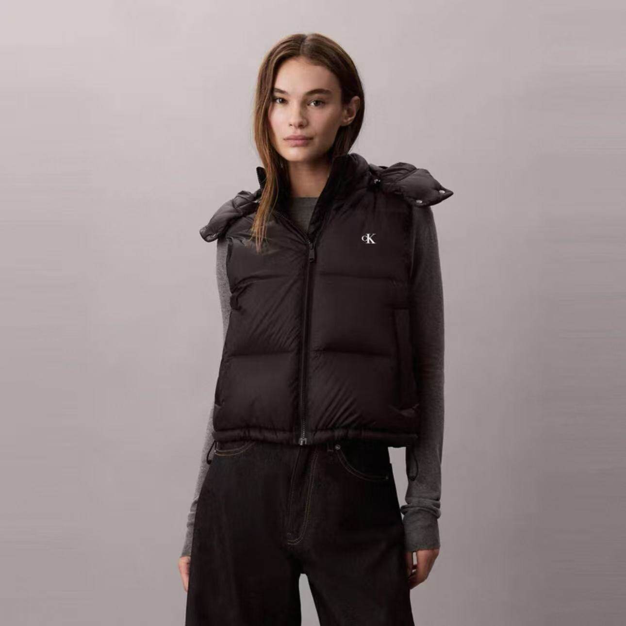 📚 CK Jeans25秋季新女士休闲通勤印花鸭绒连帽羽绒背心47D500G