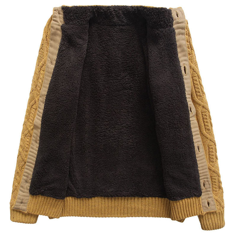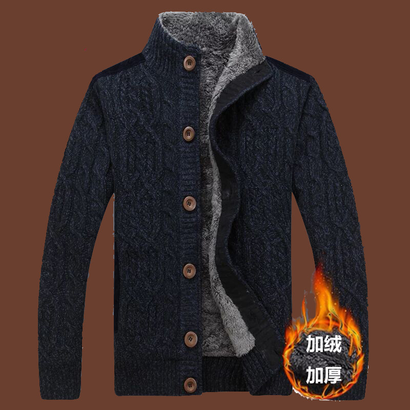 📚 秋冬新款男士加绒羊毛衫宽松开衫毛衣针织衫男外套加厚针织衫