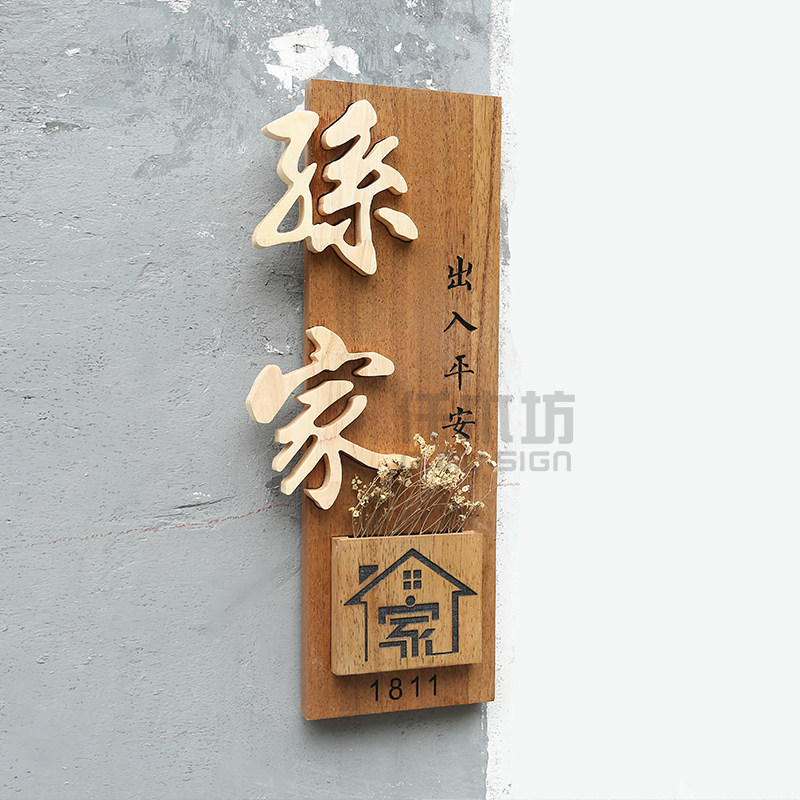📚 个性实木雕刻牌匾字别墅家门牌号插花挂牌logo装饰木质招牌定制