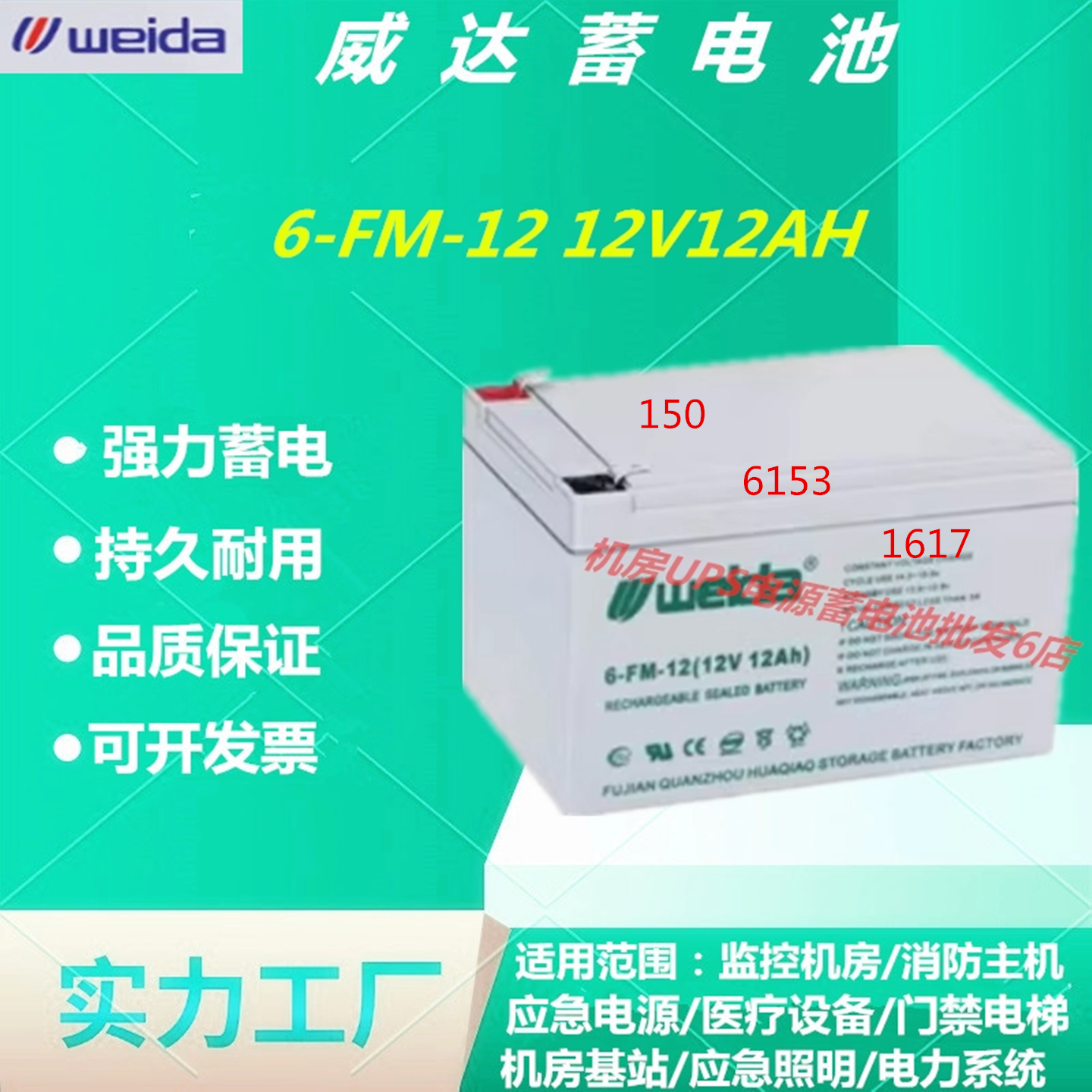 📚 Weida威达蓄电池6-FM-12 12V12AH通信基站UPS电源消防主机免维护