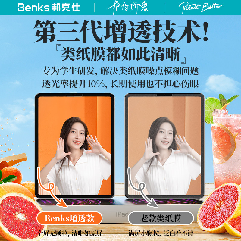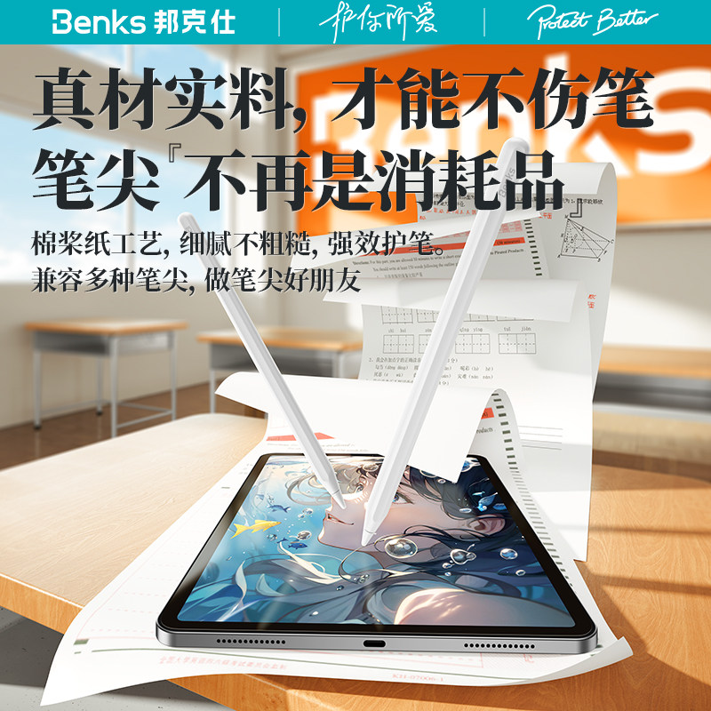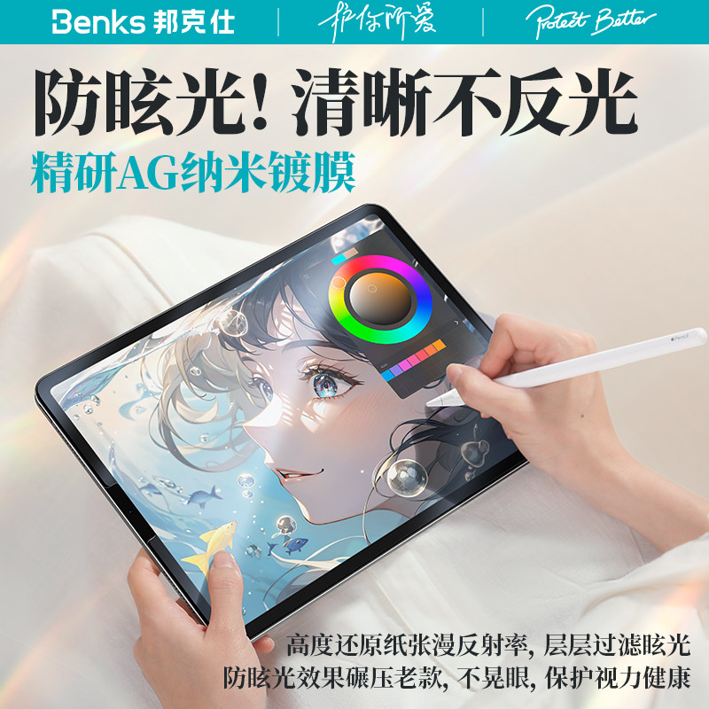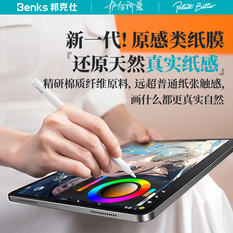 📚 Benks适用iPad类纸膜Air7平板保护Pro2025新款苹果第11代磁吸钢化ar5可拆卸式书写11/13寸磨砂6纳米吸附粘贴