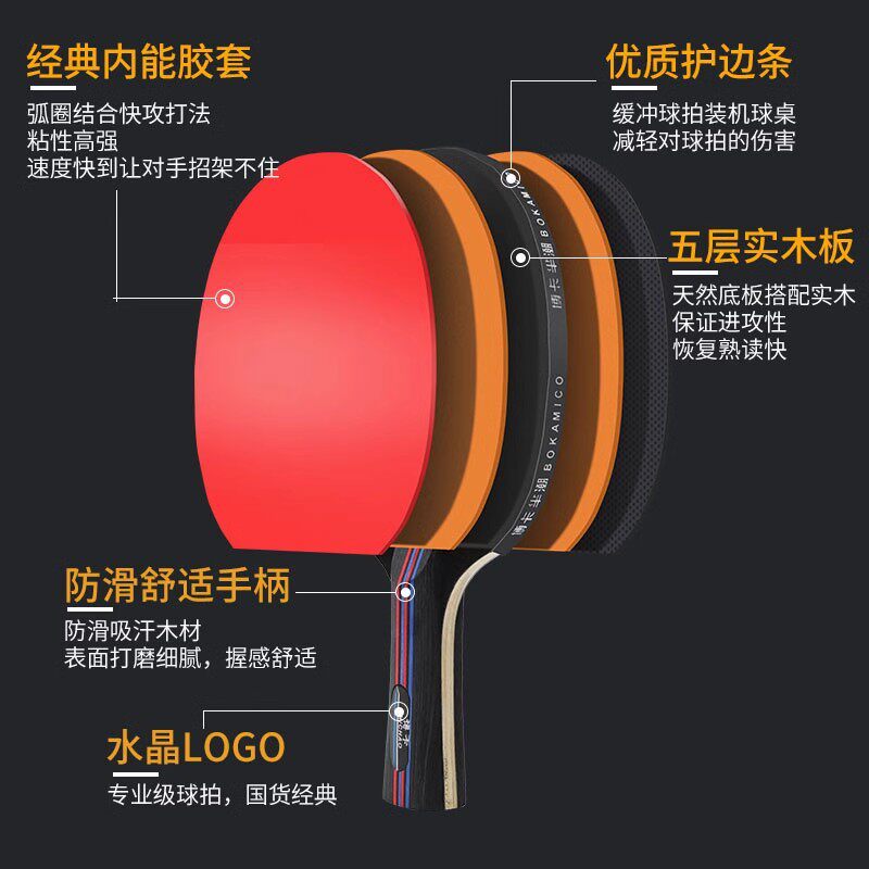 📚 十大名牌乒乓球拍博卡2只装正品成品拍高弹力初学儿童小学生横拍