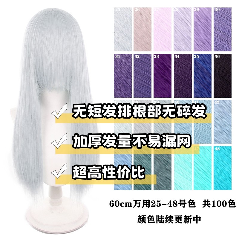 📚 【千型】万用cos假发60cm万用头皮顶加厚蓝色紫色此链接25-48色
