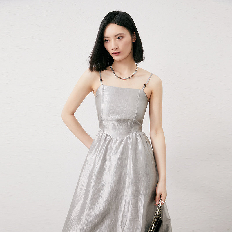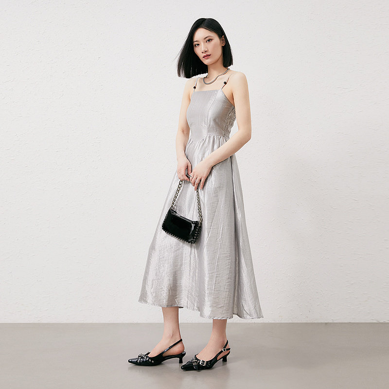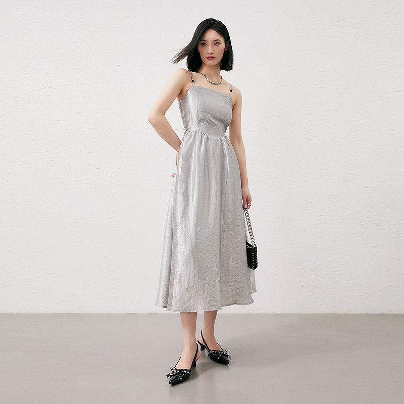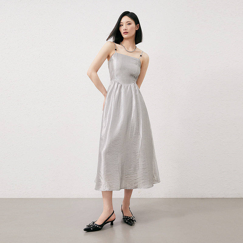 📚 普普风优雅串珠流光溢彩吊带连衣裙女2024新款锻面中长款9129