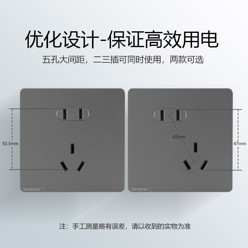📚 西门子开关插座皓彩系列深灰银10A五孔USB一开家用大面板暗装