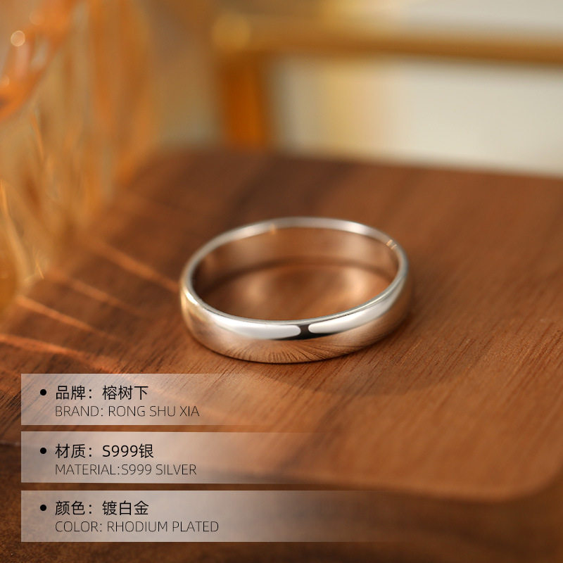 📚 榕树下S999纯银光面素圈戒指男女情侣对戒简约基础款宽面闭口指环