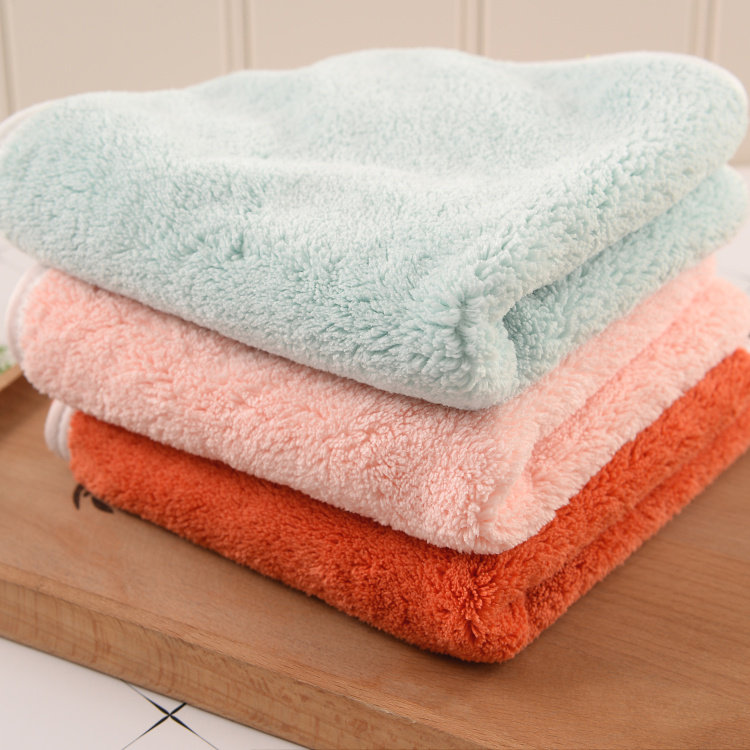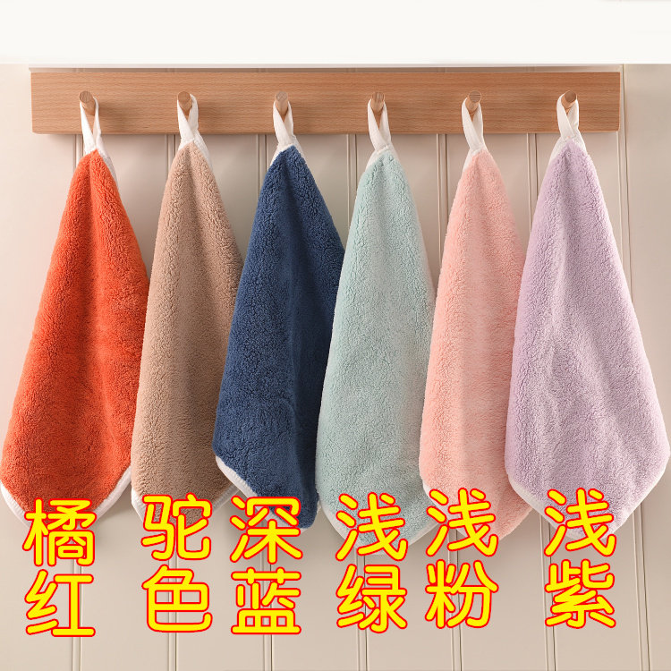 📚 加厚挂式珊瑚绒洗脸毛巾小方巾清洁擦手帕子非纯棉吸水不掉毛家用