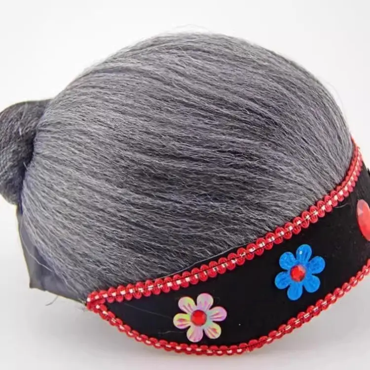 📚 媒婆头饰老婆头套老太太假发头套丑婆老奶奶戏曲彩旦演出包邮现货
