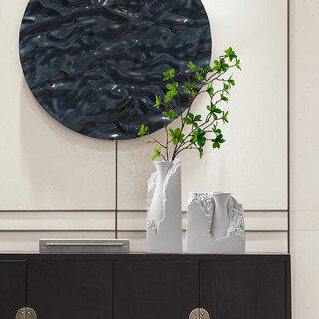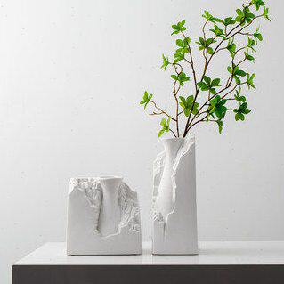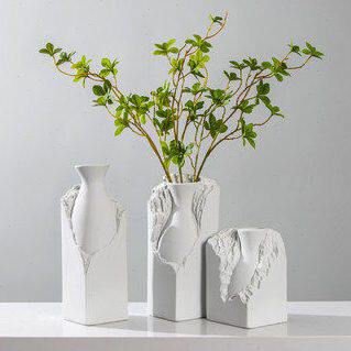 📚 新中式现代极简白色浮雕石头陶瓷花瓶摆件样板间玄关室内软装饰品