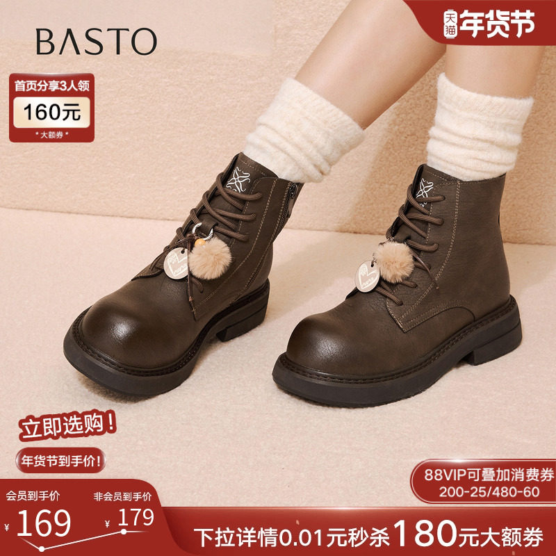 📚 百思图2025冬季新款马丁靴踢不烂大黄靴工装靴粗跟女短靴D3770DZ5