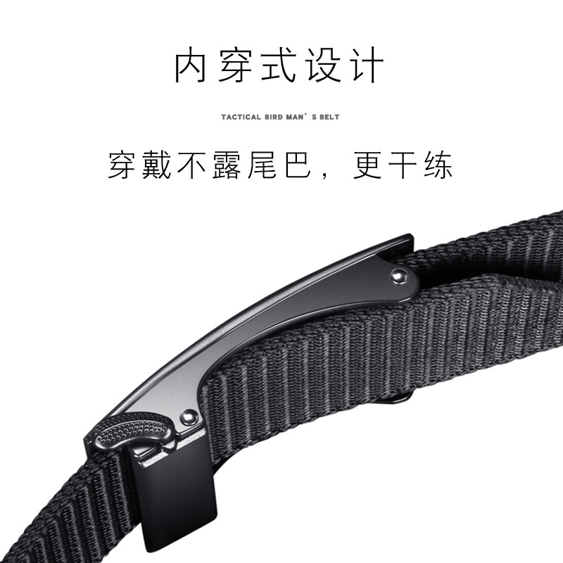 📚 战术鸟内扣丨内穿式自动扣皮带不露尾帆布腰带男尼龙休闲编织裤带