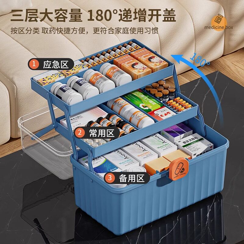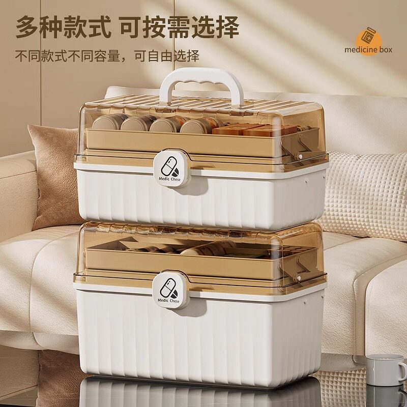 📚 日本家用药箱家庭装药物收纳盒大容量医药箱多层儿童药品塑料药盒
