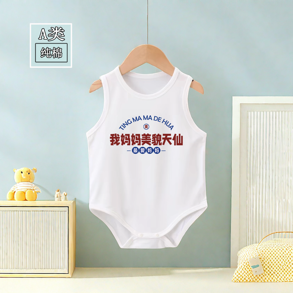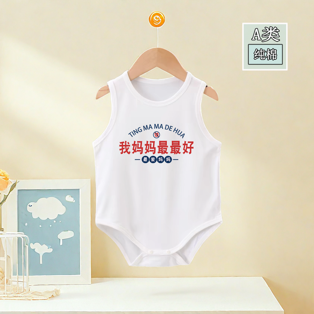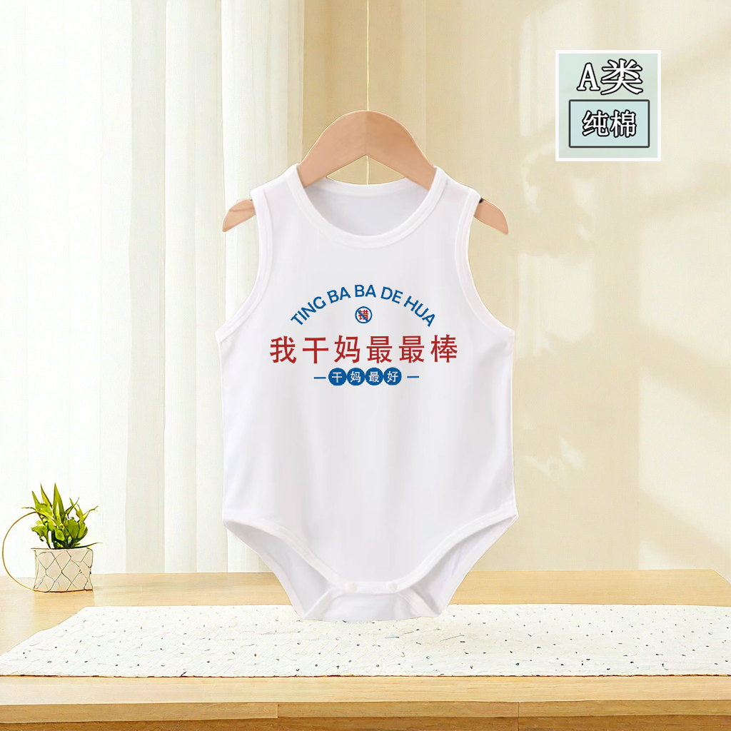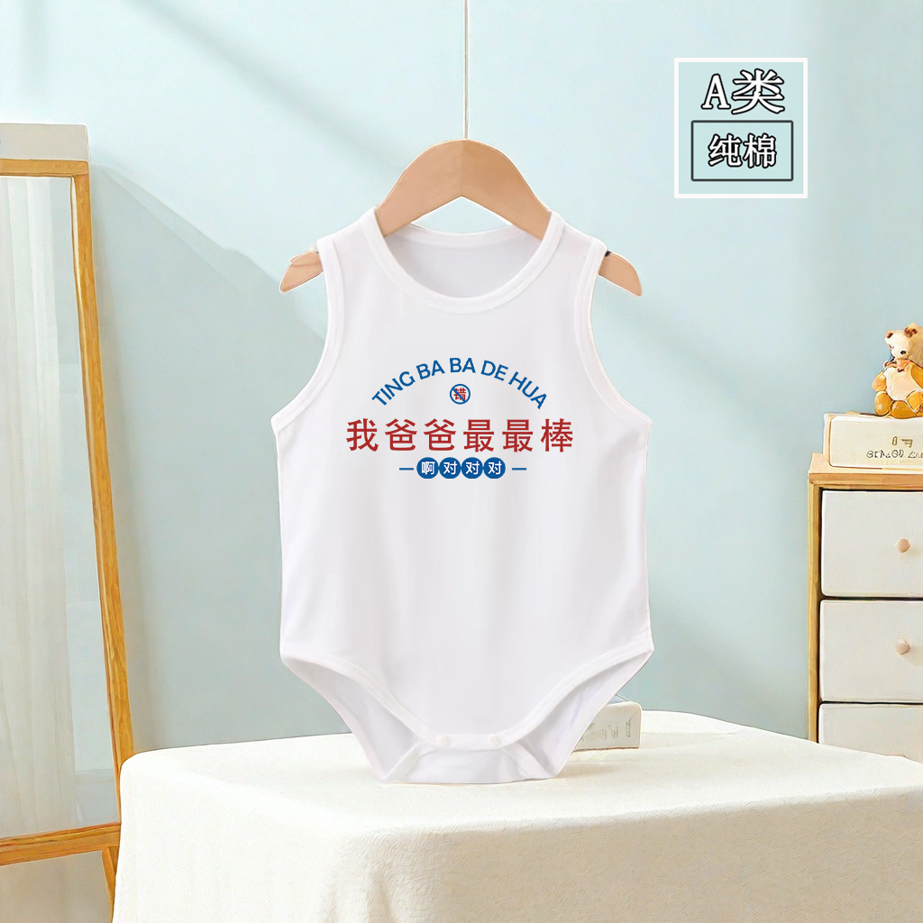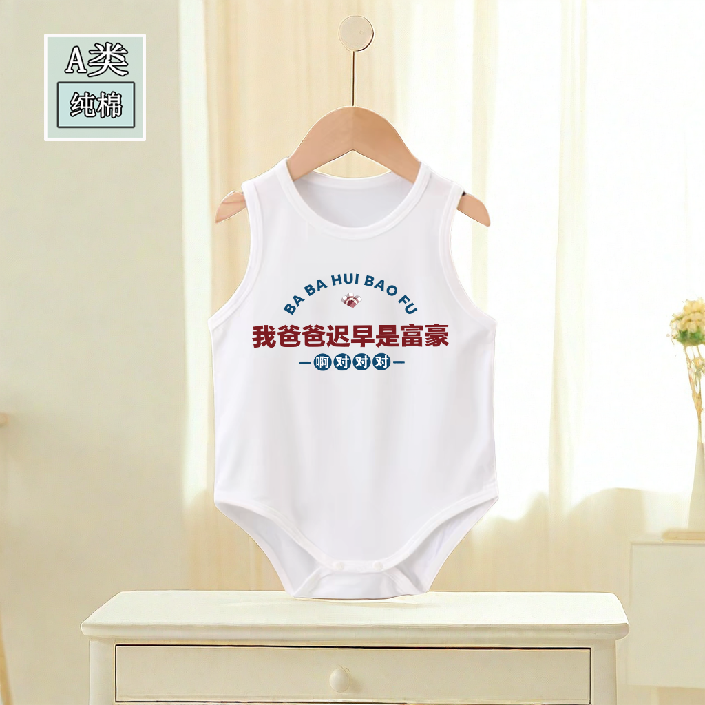 📚 我爸爸迟早是富豪婴儿无袖连体衣夏季纯棉薄款护肚新生婴儿衣服