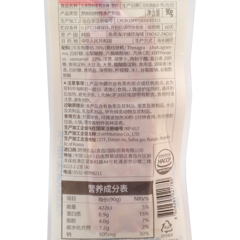 📚 韩国仁川机场同款鳕鱼棒古来思鲜虾鳕鱼棒 整虾 鲜虾鱼糕鱼饼即食