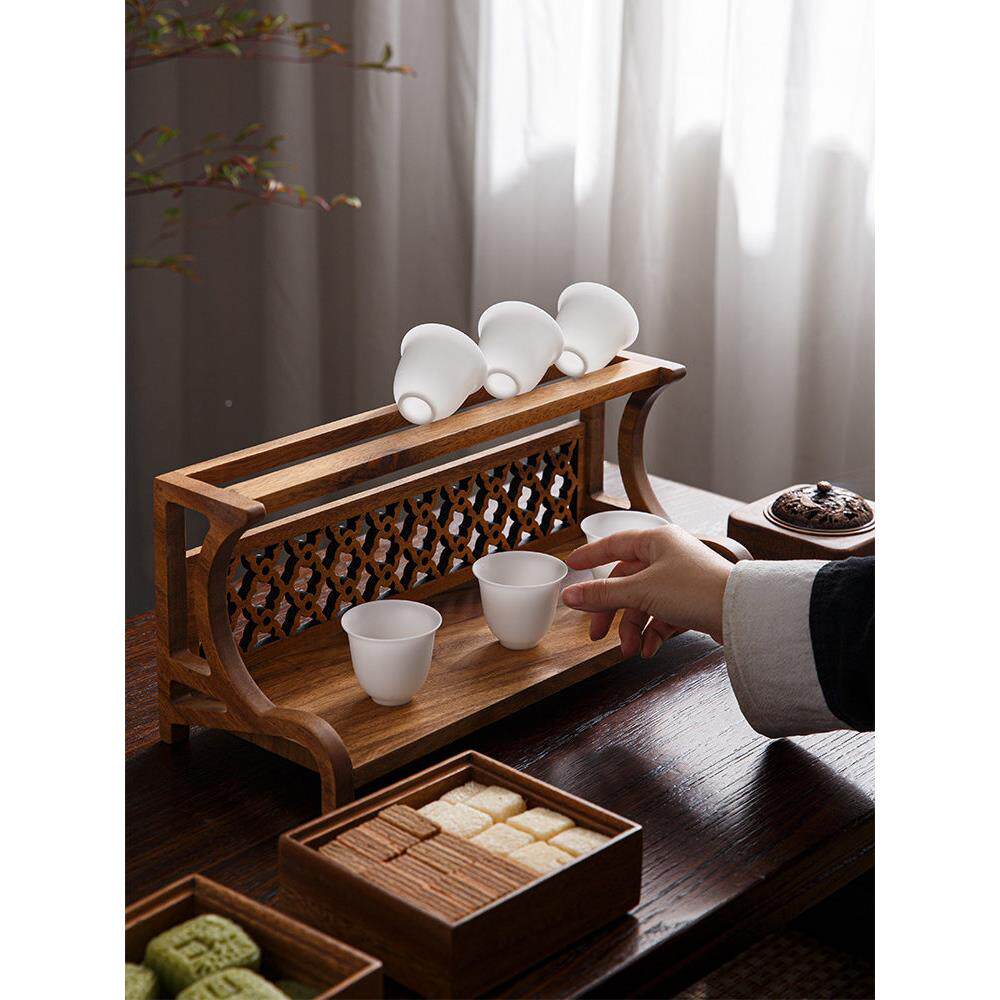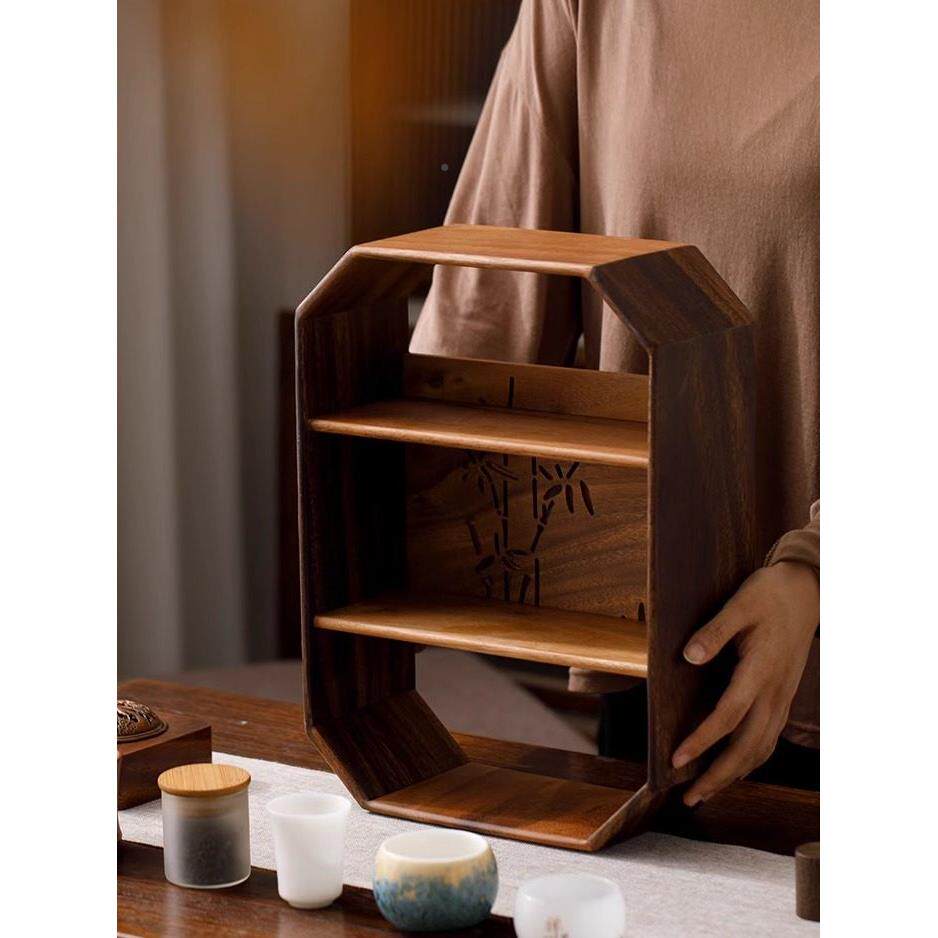 📚 胡桃木置物架小型架桌面茶杯博古架新中茶室几收纳茶杯架式展无品