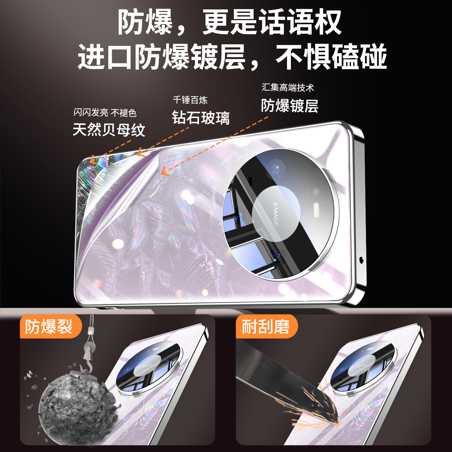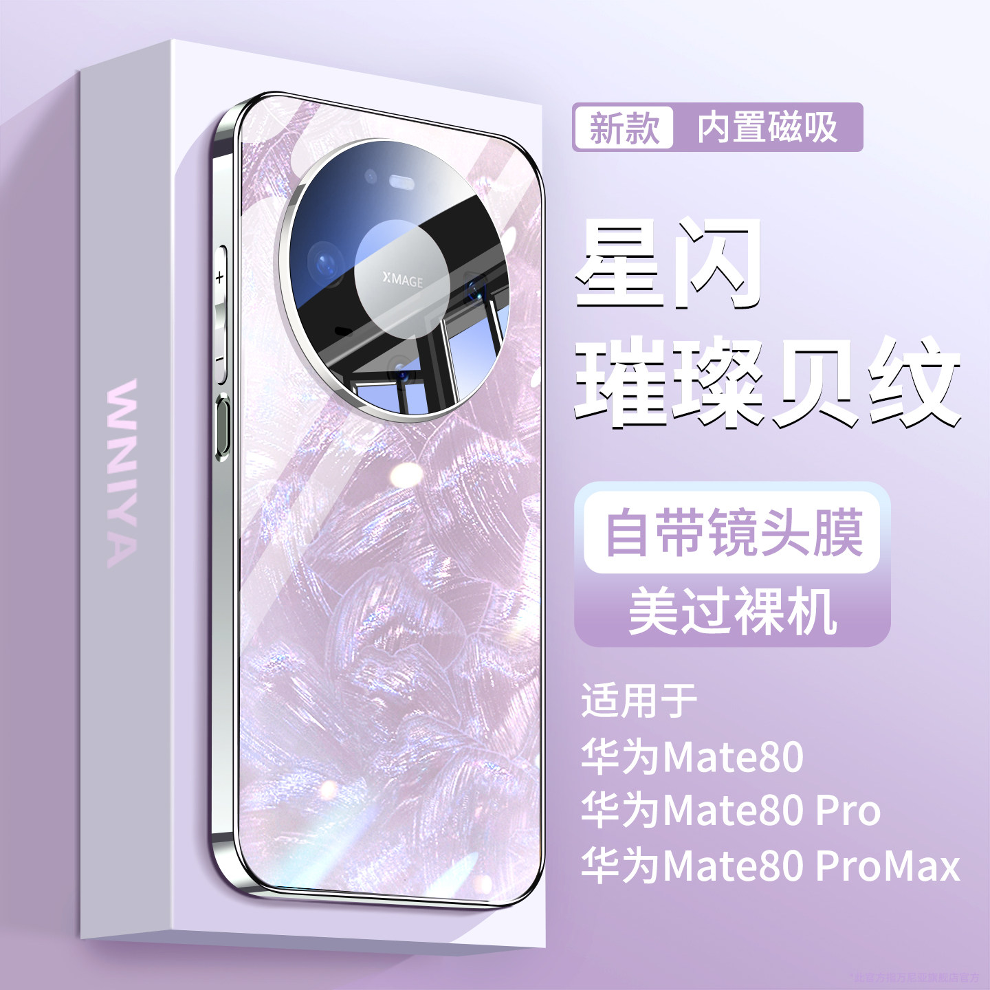 📚 适用华为mate80手机壳磁吸新款带镜头膜全包防摔mate80promax贝壳纹玻璃外壳系列m80pro高级感女生新品保护套