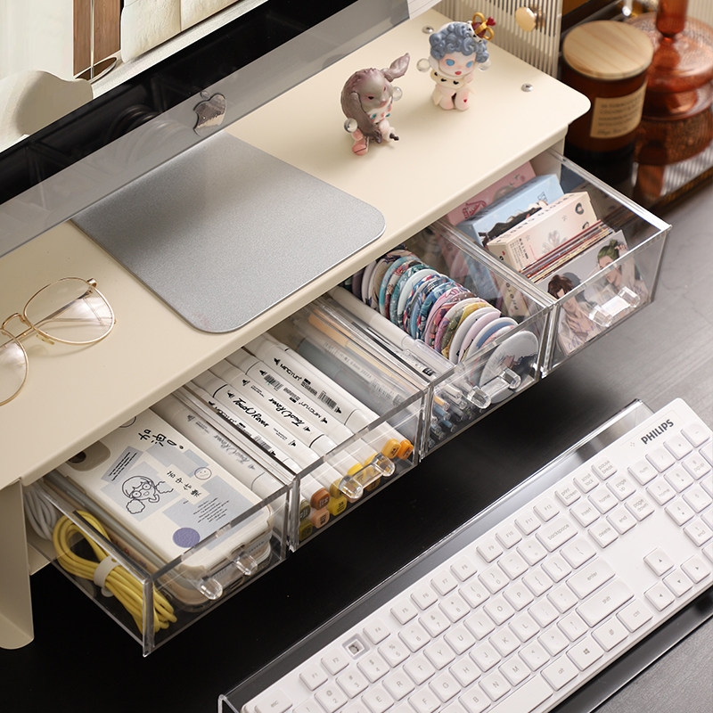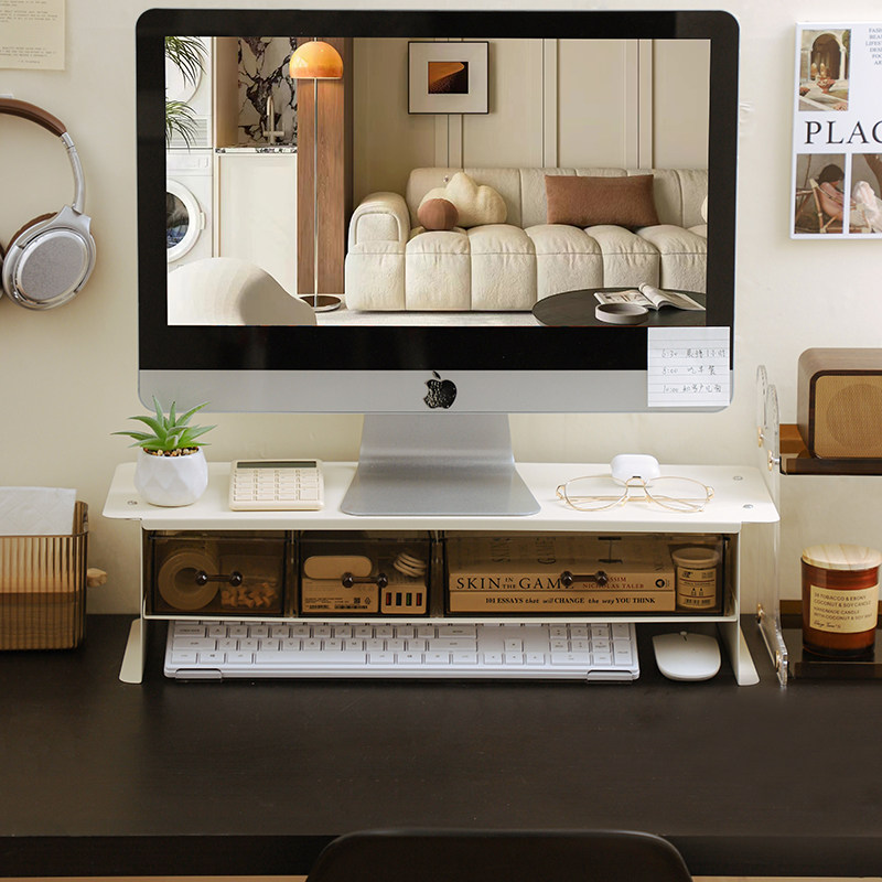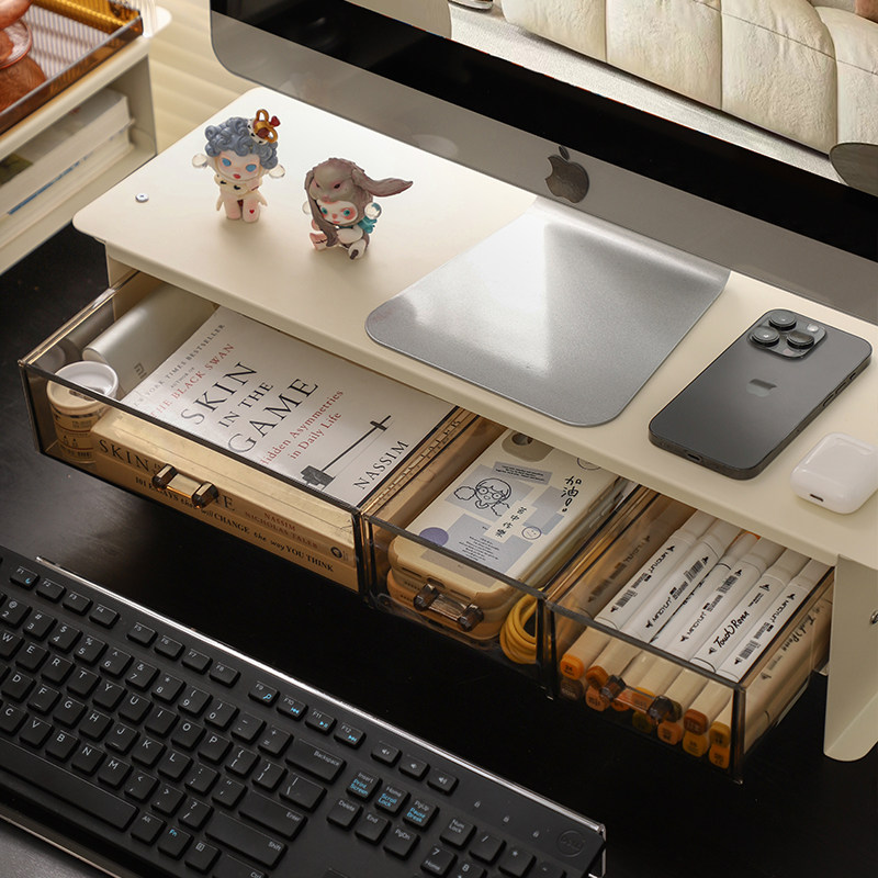 📚 台式电脑增高架带抽屉铁艺手提笔记本托架显示器支架底座屏幕分层搁板办公室工位改造神器桌面美化键鼠置物架
