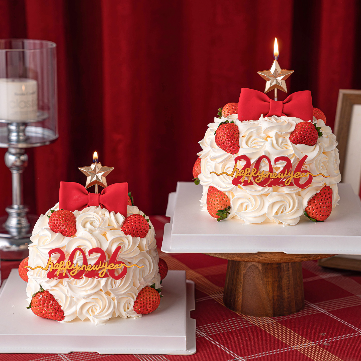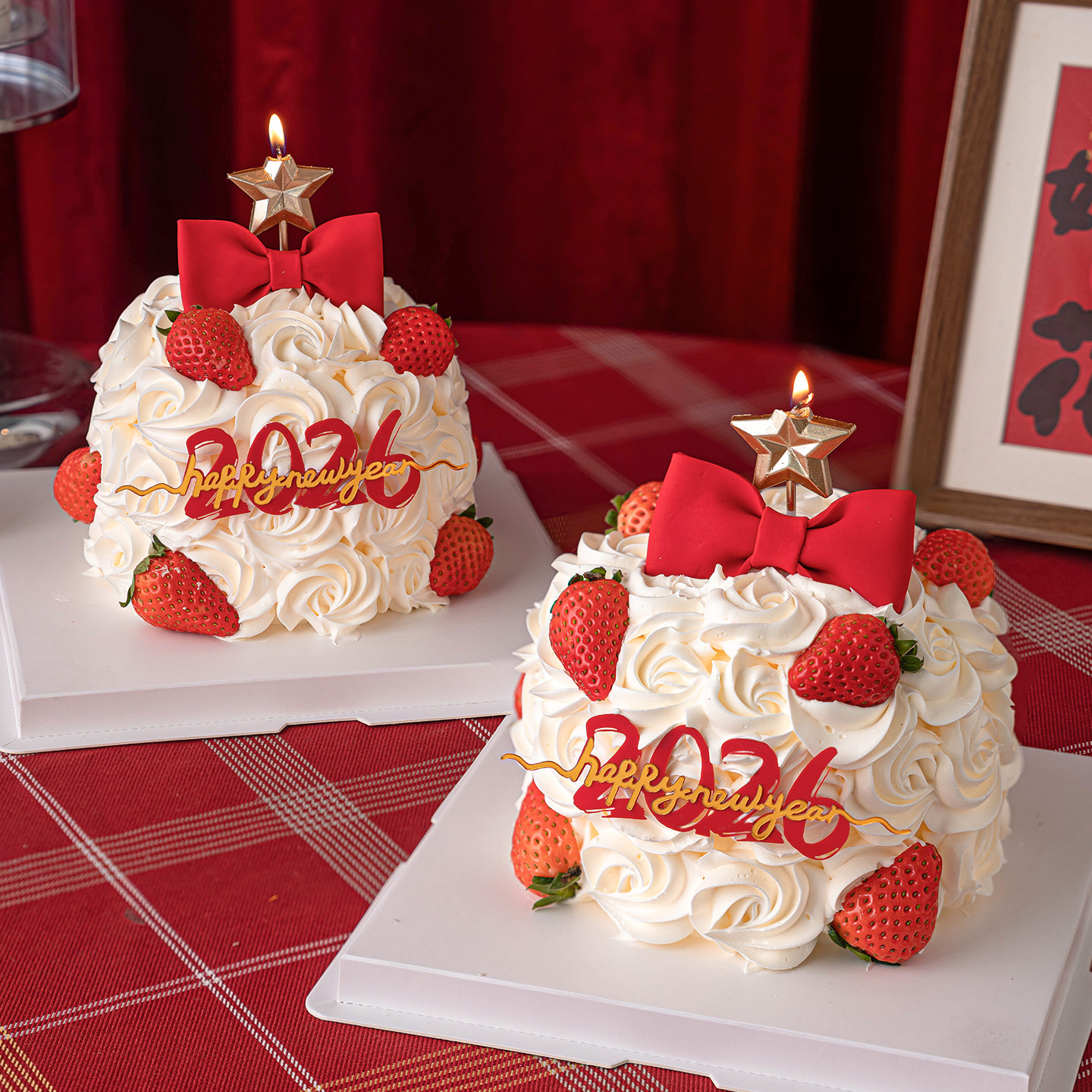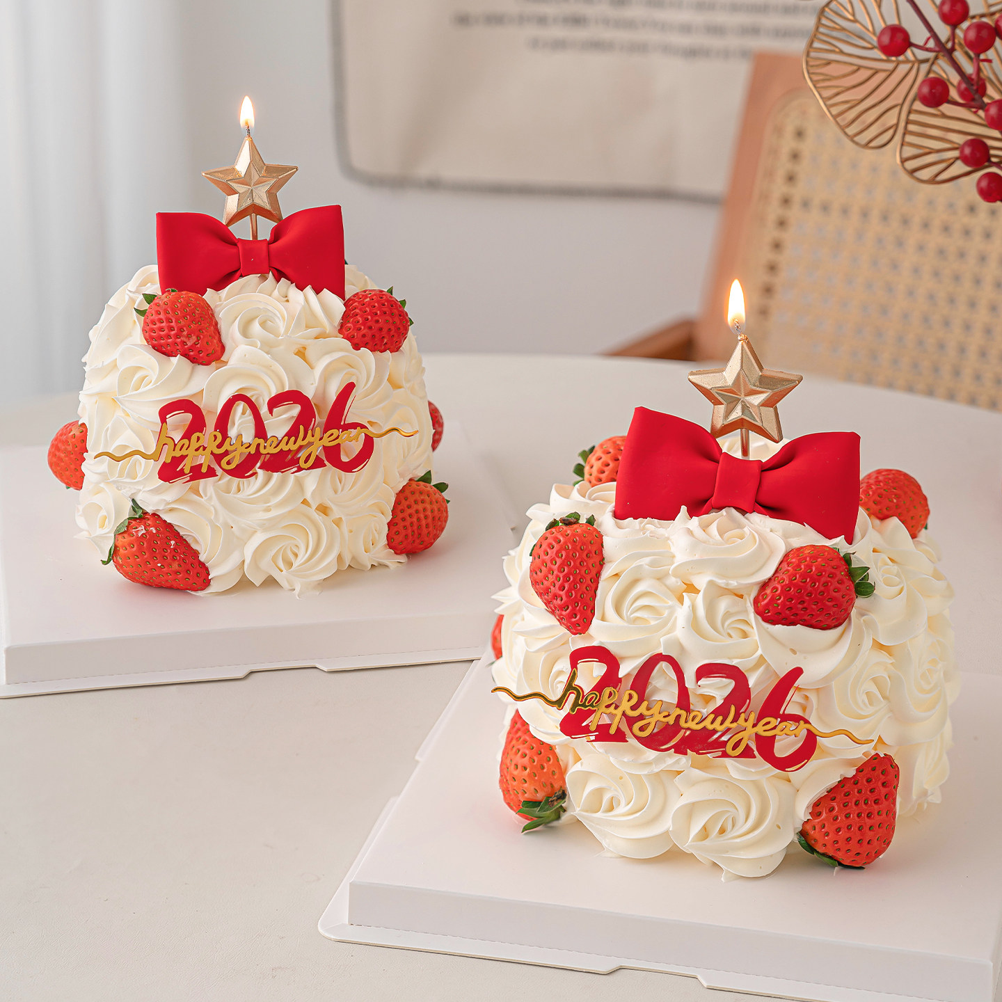📚 2026新年许愿树蛋糕装饰钻石五角星蜡烛插件除夕夜派对蝴蝶结装扮