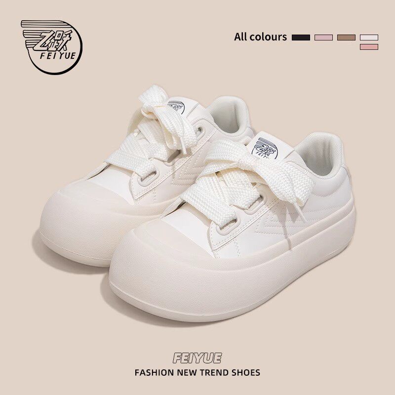 📚 feiyue/飞跃加绒小白鞋女2025冬季新款厚底保暖大头鞋增高板鞋子