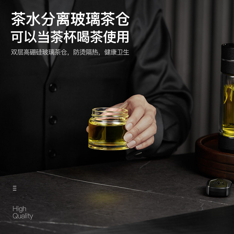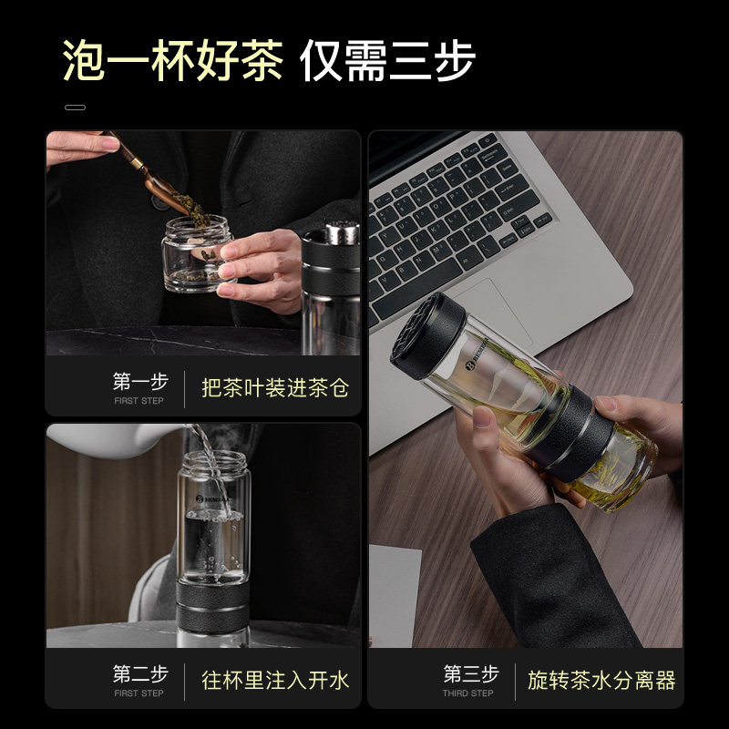 📚 英国Bemega茶水分离泡茶杯双层高硼硅玻璃杯男款大容量保温水杯子