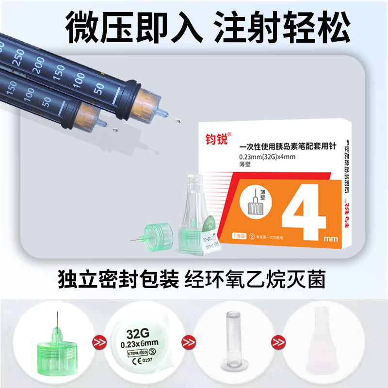 📚 钧锐胰岛素针头4mm通用糖尿病注射笔5mm打替尔泊肽司美格鲁肽针头