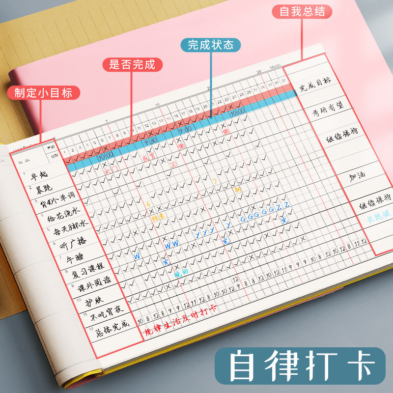 📚 自律打卡本子日常生活时间管理目标规划月计划31天习惯养成自律表