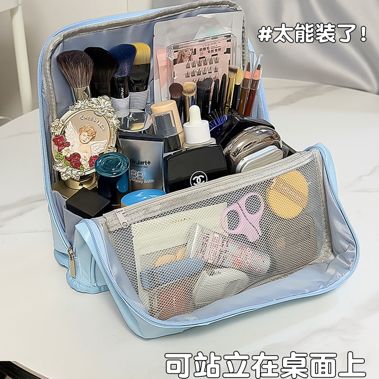 📚 送镜子!可立式化妆包女大容量便携式挂行李箱旅行手提分区收纳包防水不塌2026新款化妆品洗漱收纳包文具笔袋