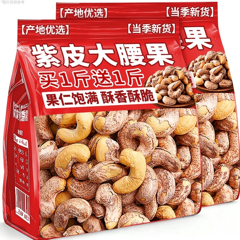 📚 央2025新货紫皮腰果仁原味无添加衣盐焗坚果官方旗舰店年货大腰果