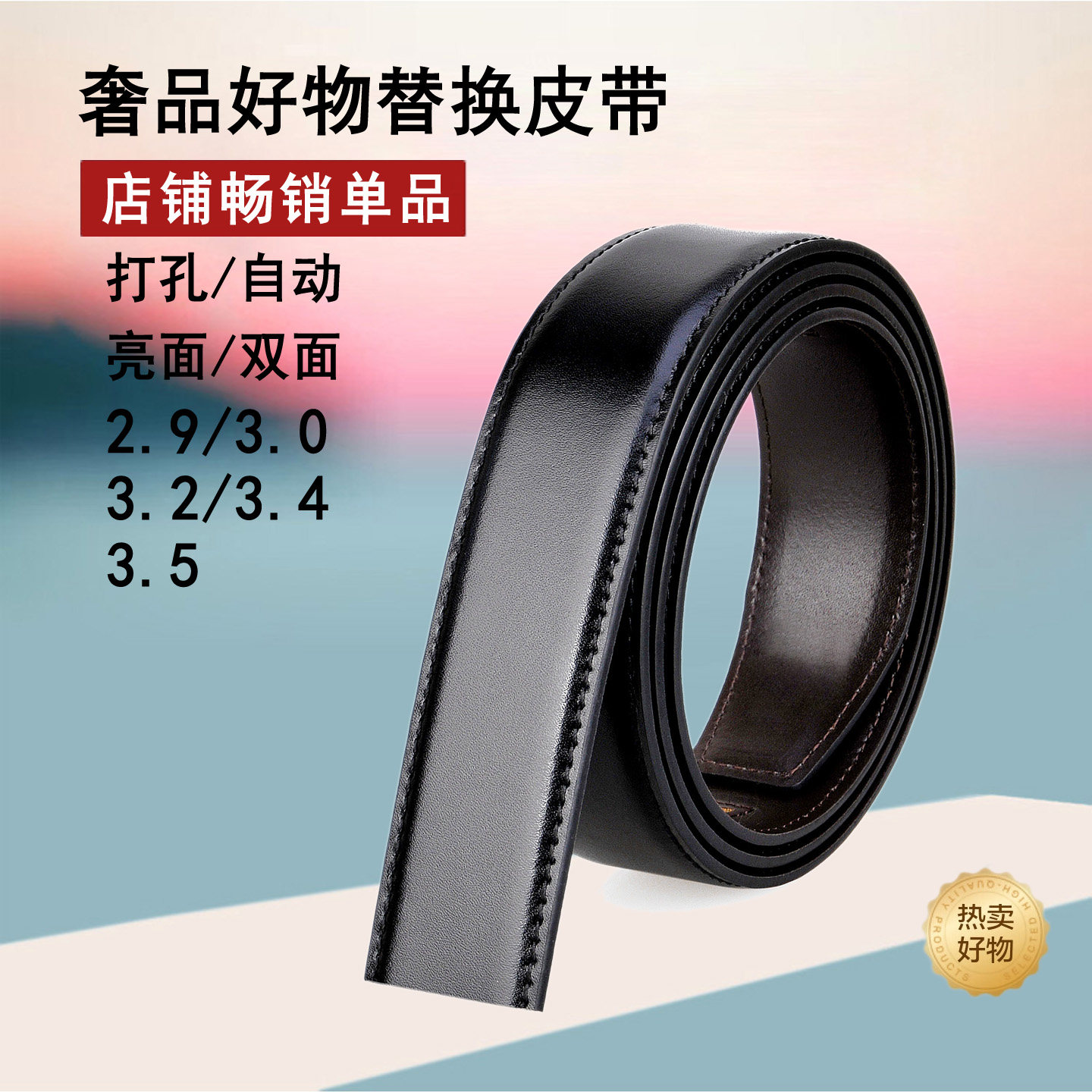 📚 无头皮带男真皮不带头自动扣针扣打孔纯牛皮真皮带身不带扣头腰带