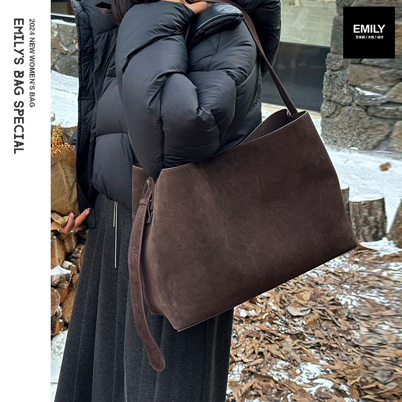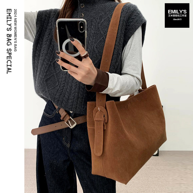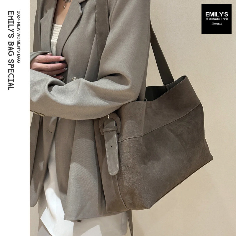 📚 新款真皮麂皮女包美拉德卡扣复古休闲通勤大容量托特包单肩斜挎潮