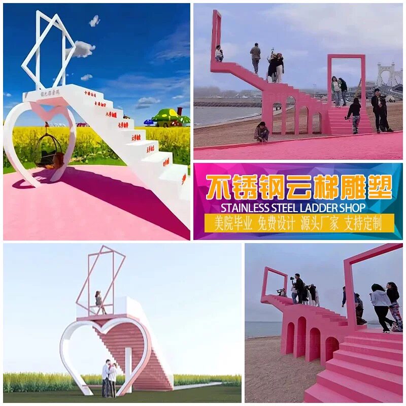 📚 不锈钢铁艺爱情主题网红打卡拍照天梯雕塑心形LOVE公园景区摆件