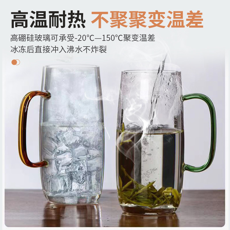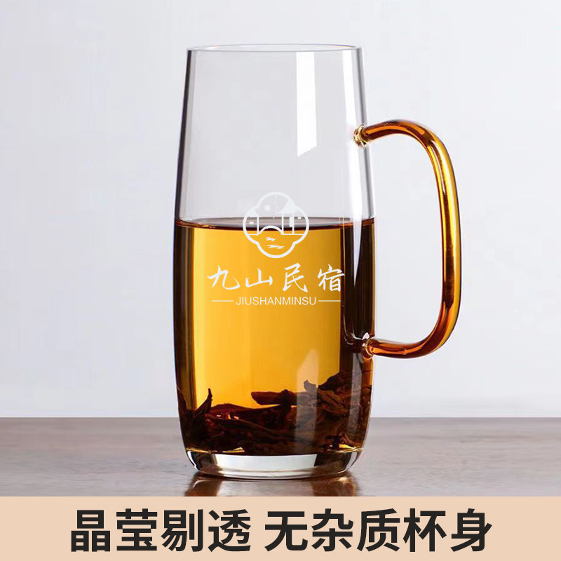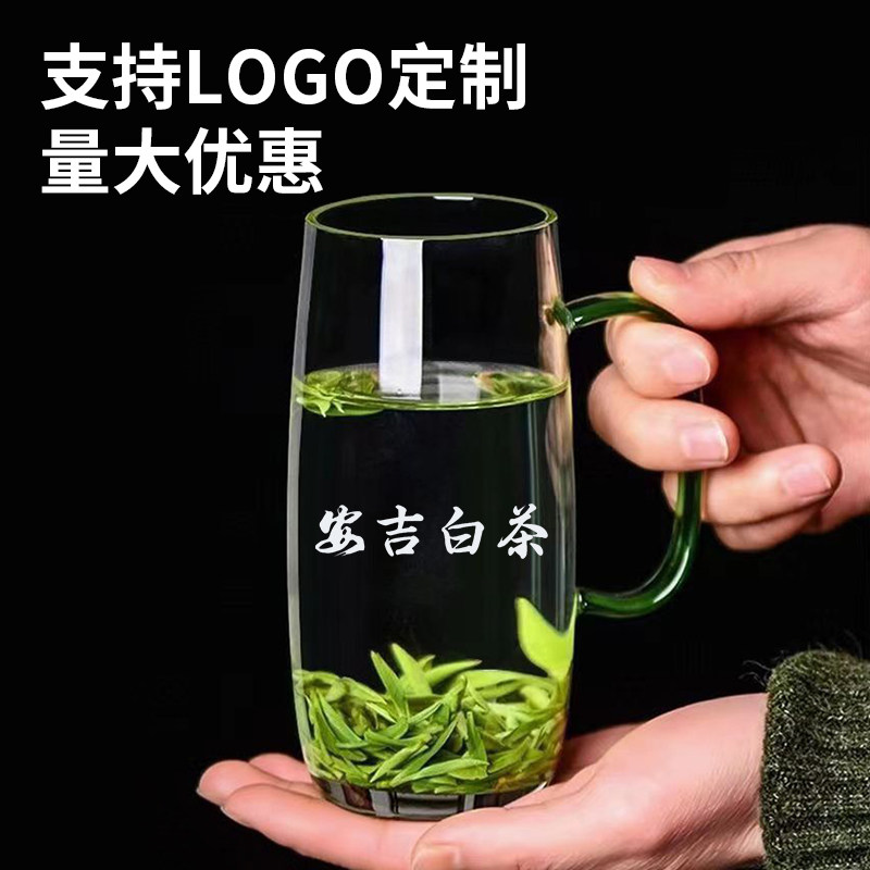 📚 玻璃杯加厚耐高温绿茶杯刻字定制logo喝茶专用泡茶杯带把手杯子