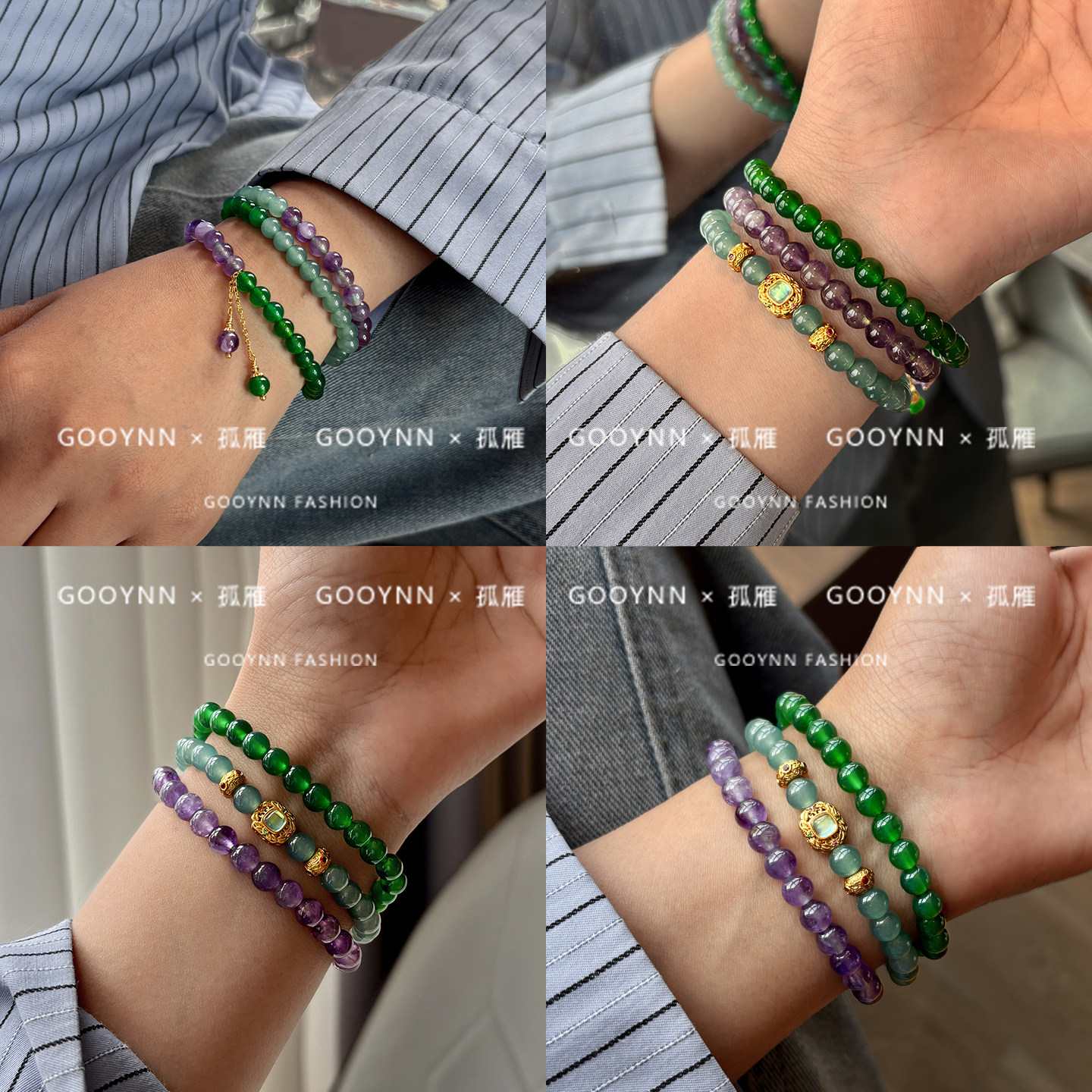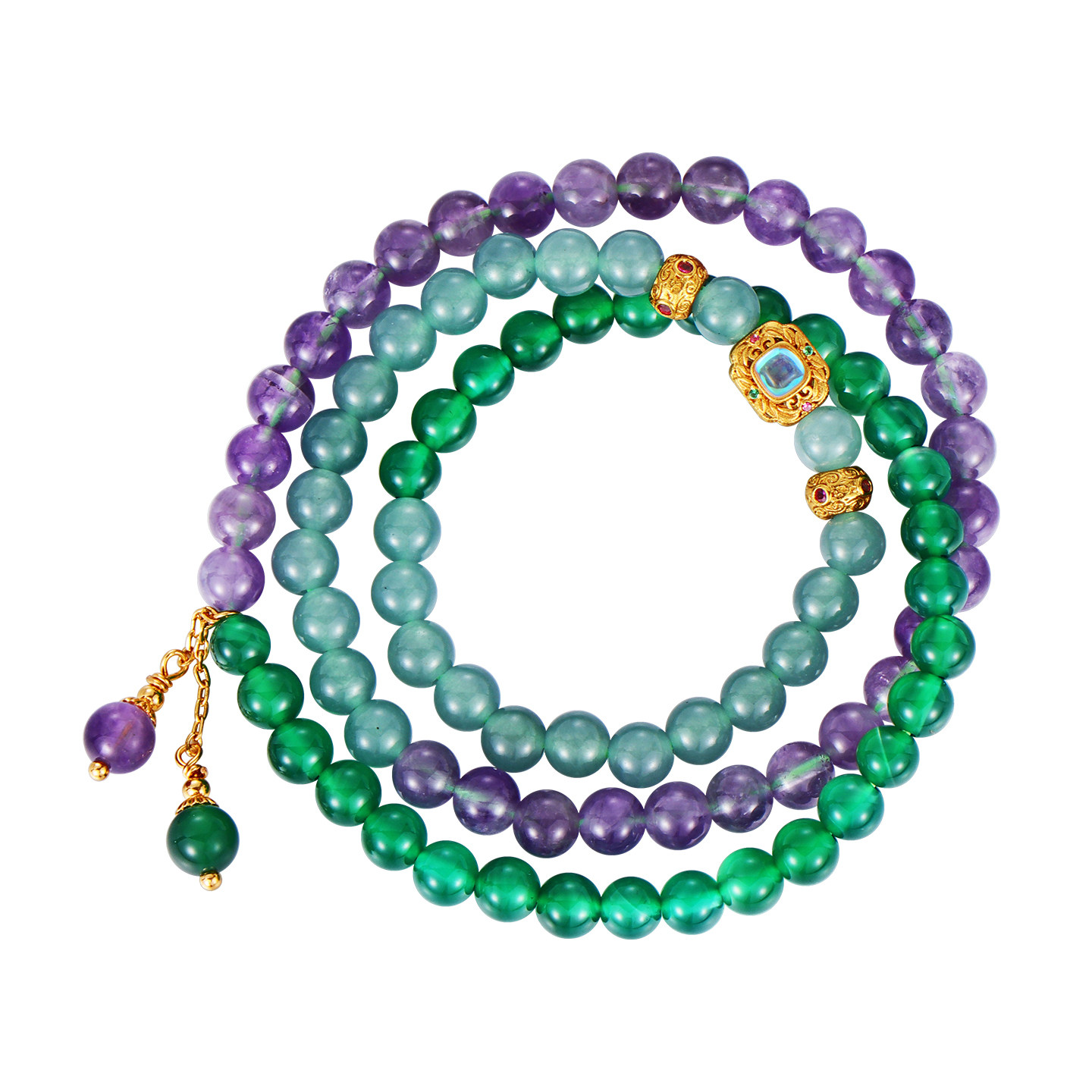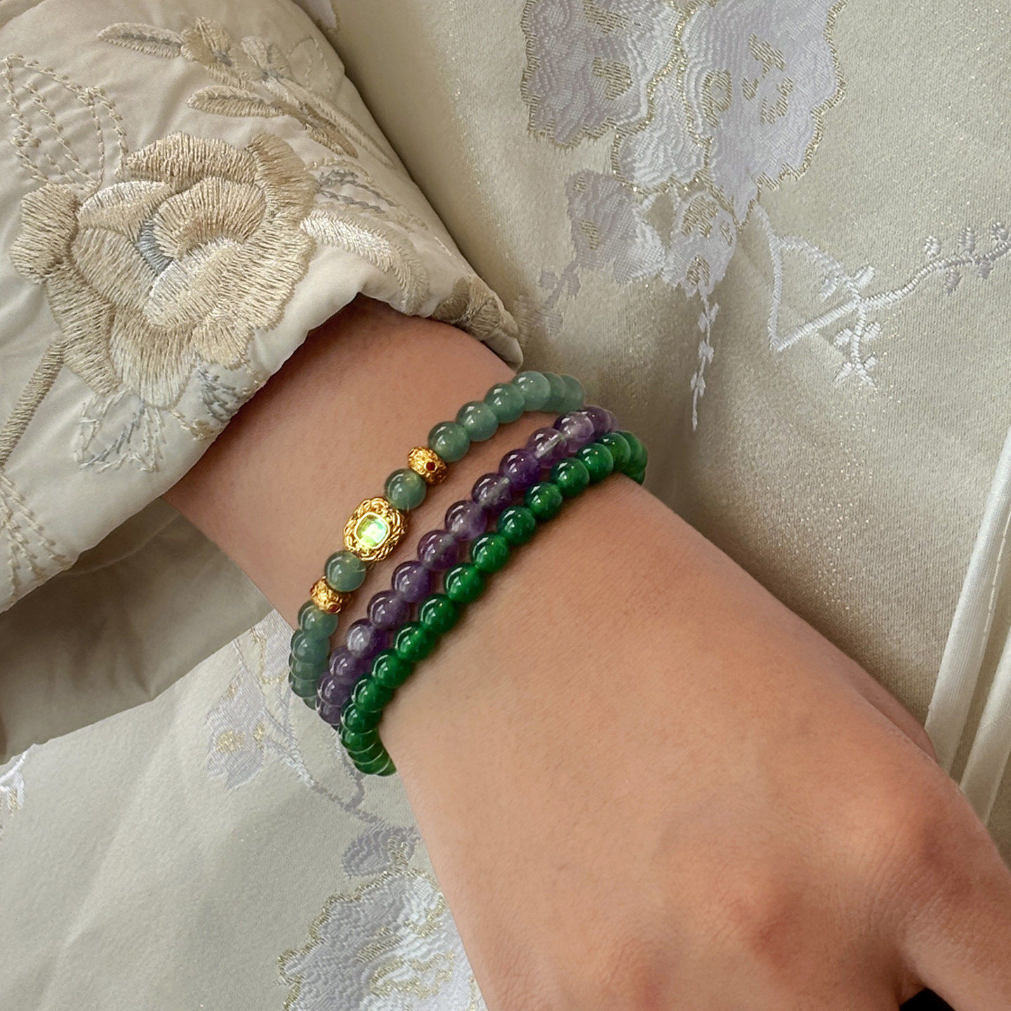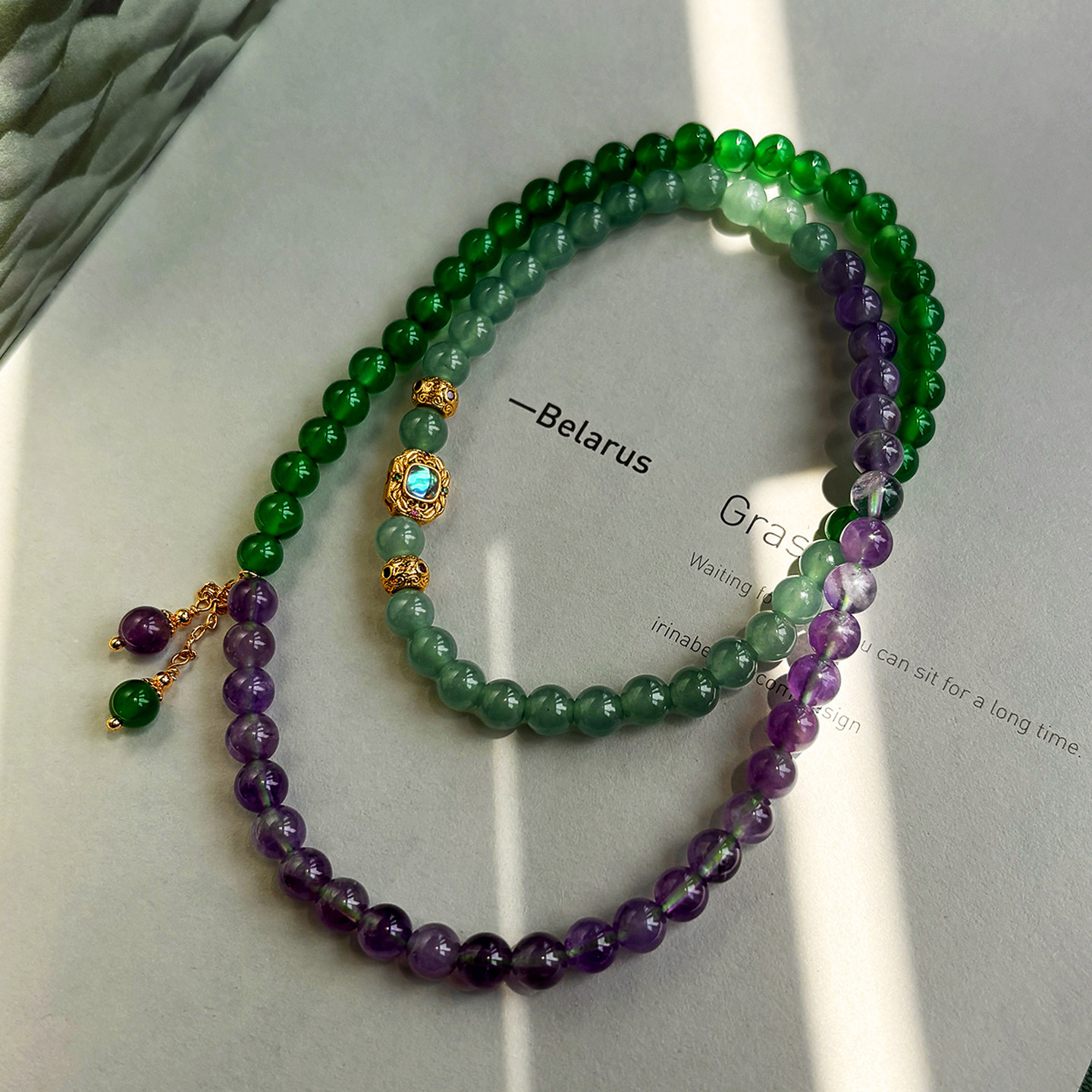 📚 天然紫水晶三圈叠戴绿玉髓玛瑙手链女款2026新款设计串珠翡翠手串