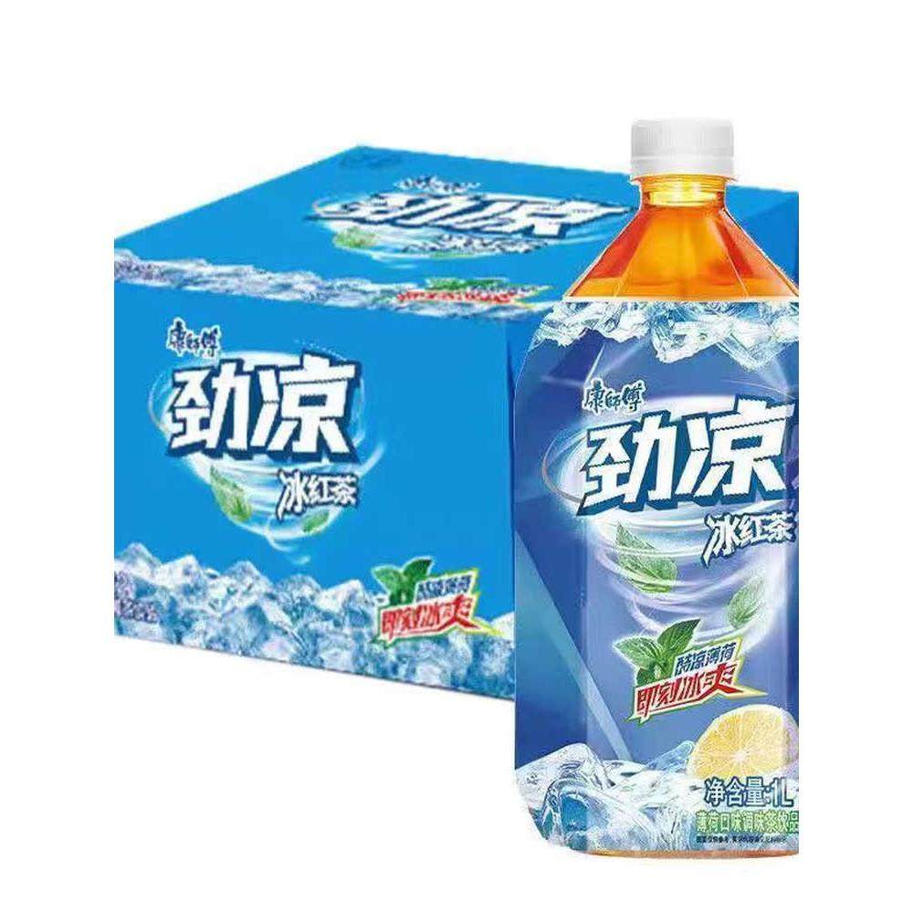 📚 康师傅1升大瓶装劲凉冰红茶冰爽薄荷1L*2/12瓶饮料茶瓶装yb