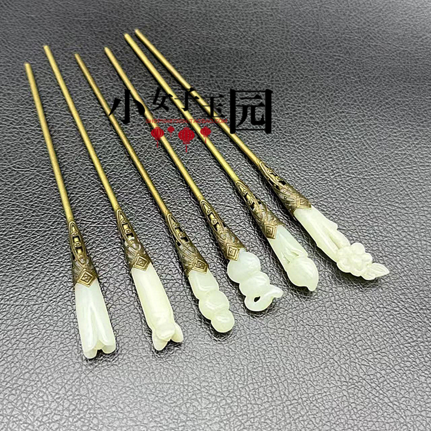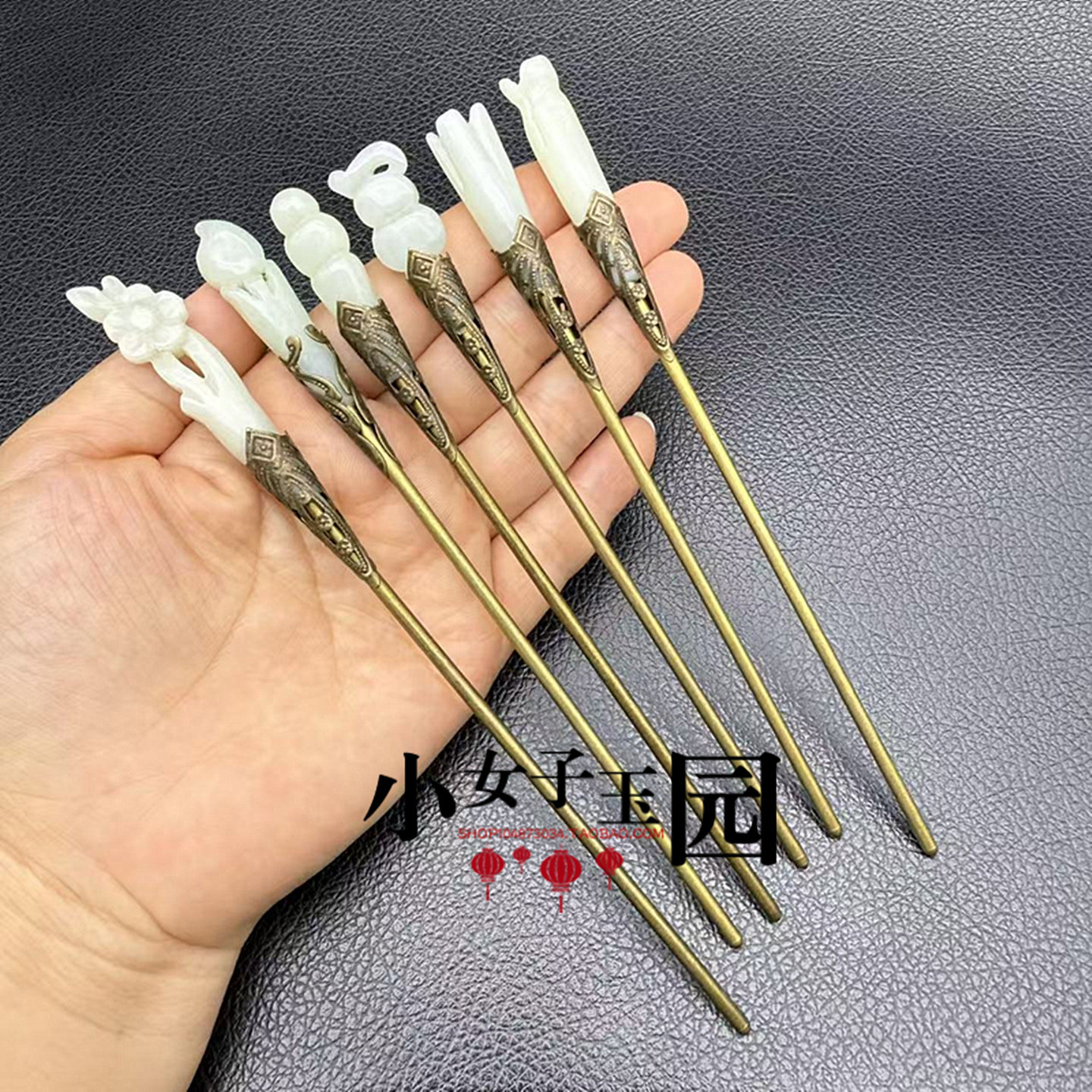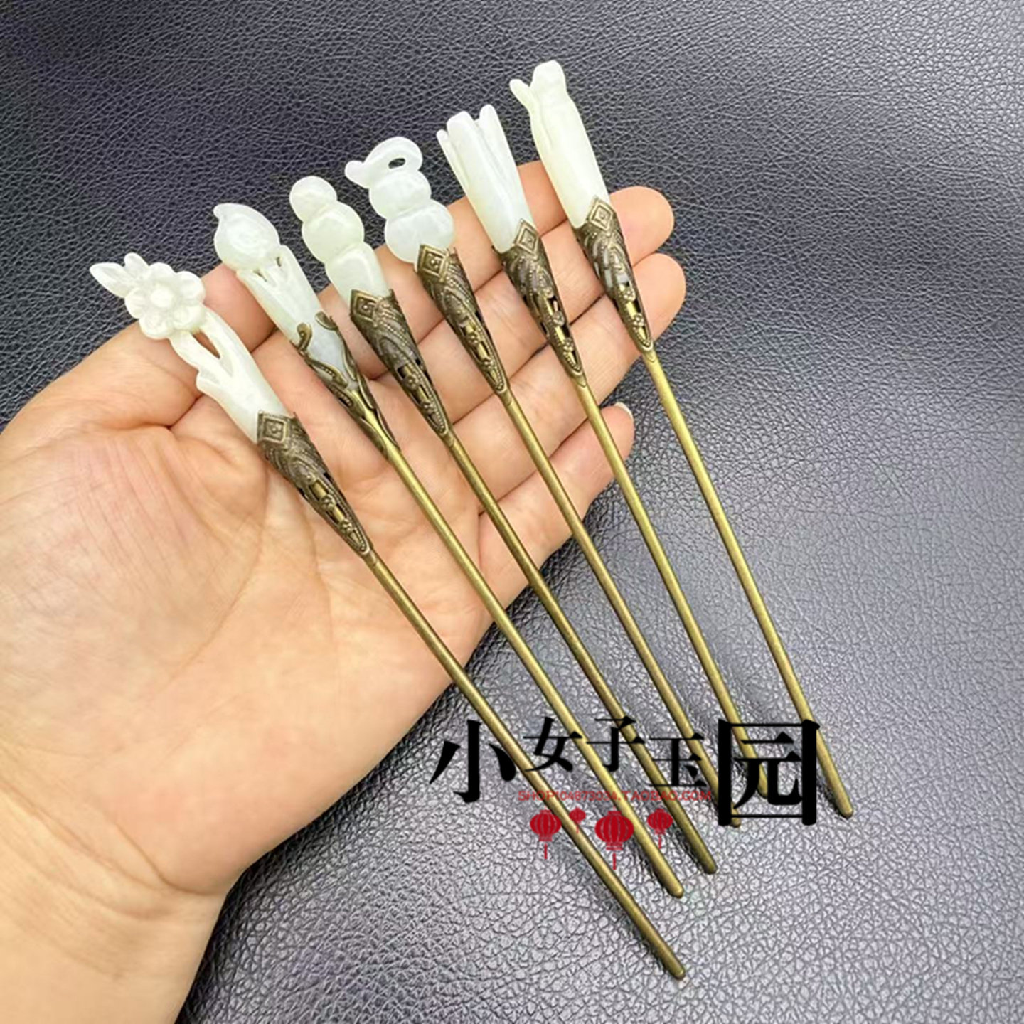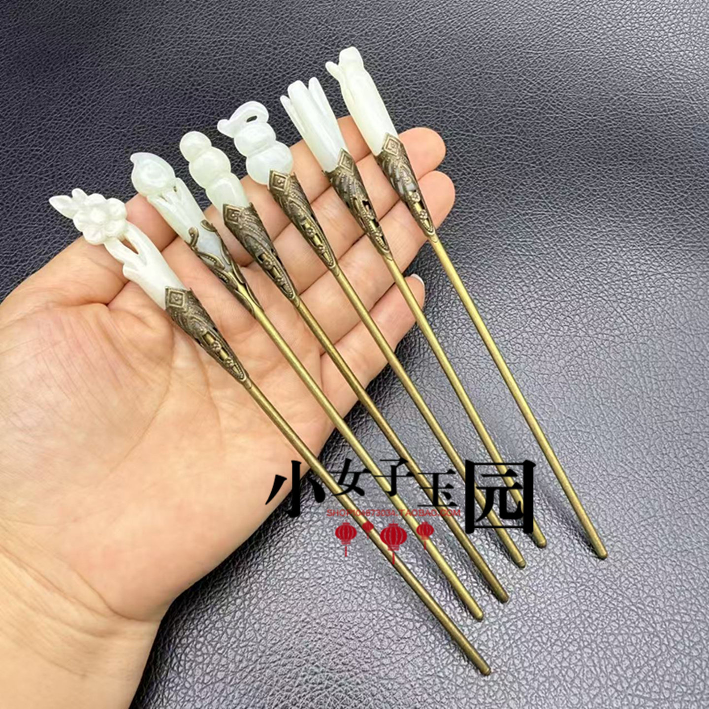📚 和田玉梅花葫芦发簪玉簪青白玉镶嵌玉簪国风旗袍中式发钗发饰礼品