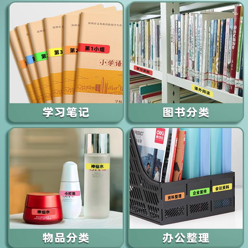 📚 防水标签分类不干胶贴纸彩虹名字贴分组姓名标识作业本标记记号贴彩色图书不留胶物品办公白色红色绿色粘性