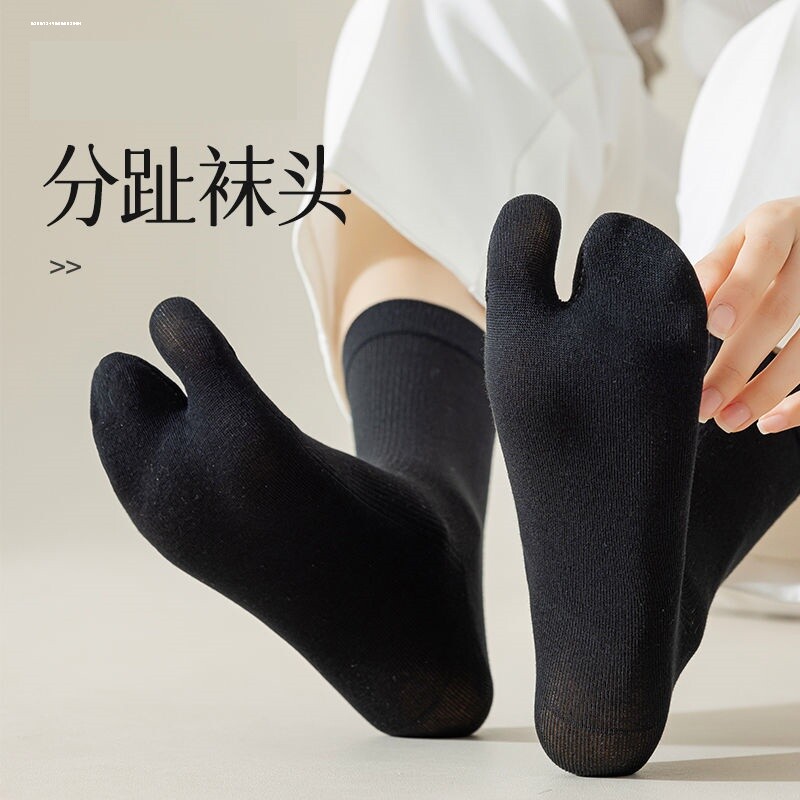 📚 分趾袜子女中筒棉春夏季薄款无骨脚拇指外翻二趾两白色人字拖鞋