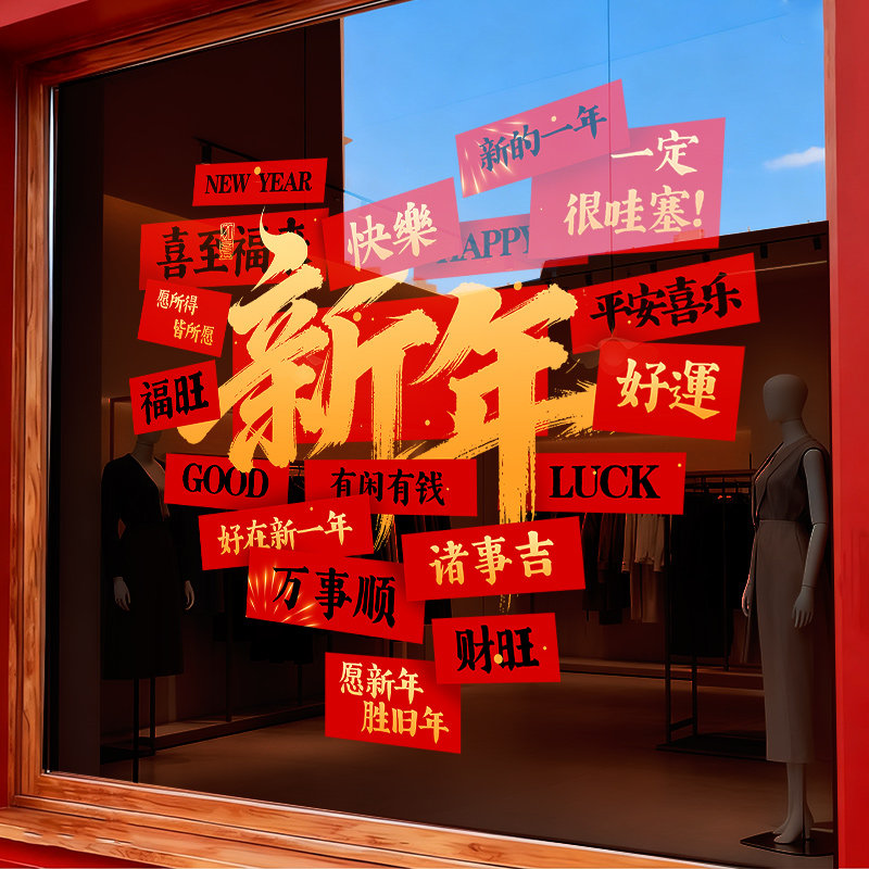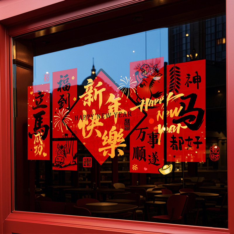 📚 新年除夕春节装饰2026马年窗花过年氛围布置窗贴画静电玻璃门贴纸
