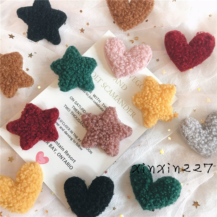 📚 日韩秋冬毛茸茸星星爱心布艺泰迪绒平面胸针胸花服饰佩饰女装饰品