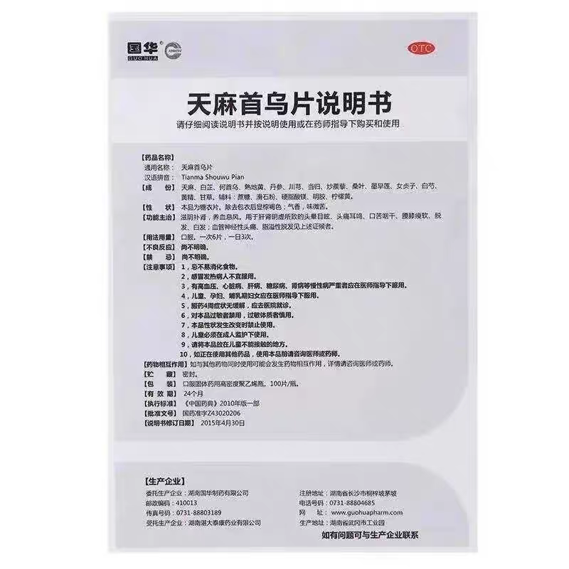 📚 天麻首乌片治头晕药头晕目眩头晕眼花头痛耳鸣乏力站不稳头昏脑胀