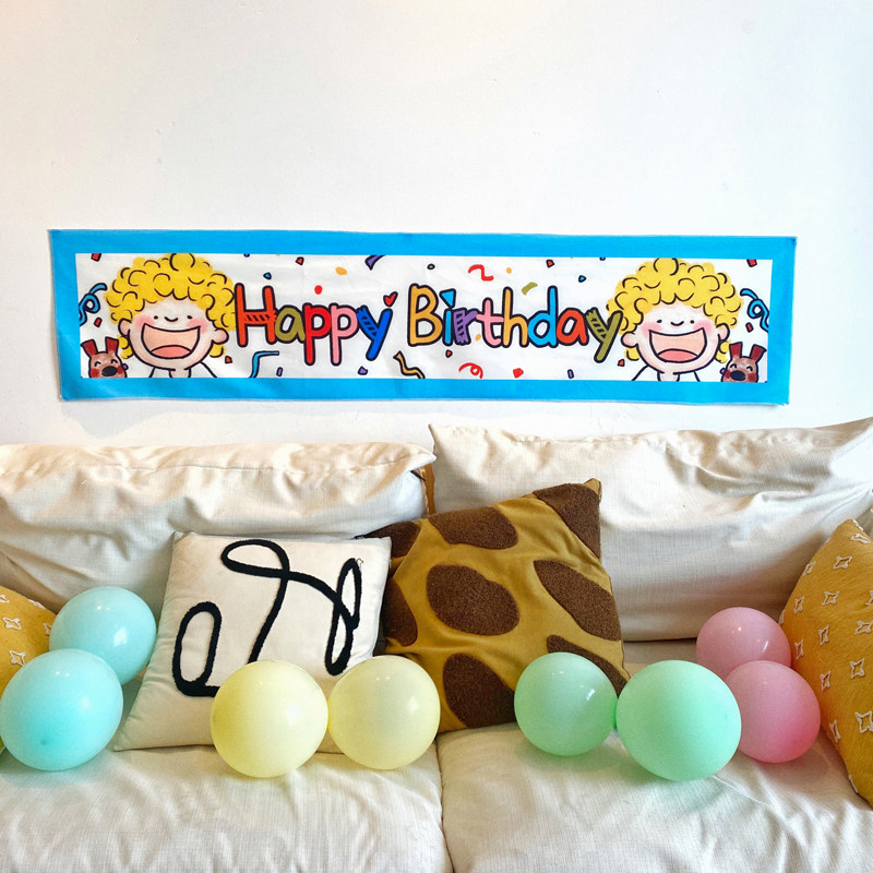📚 马吉吉自制 可爱男孩生日派对布置背景布宝宝一周岁装饰挂布定制