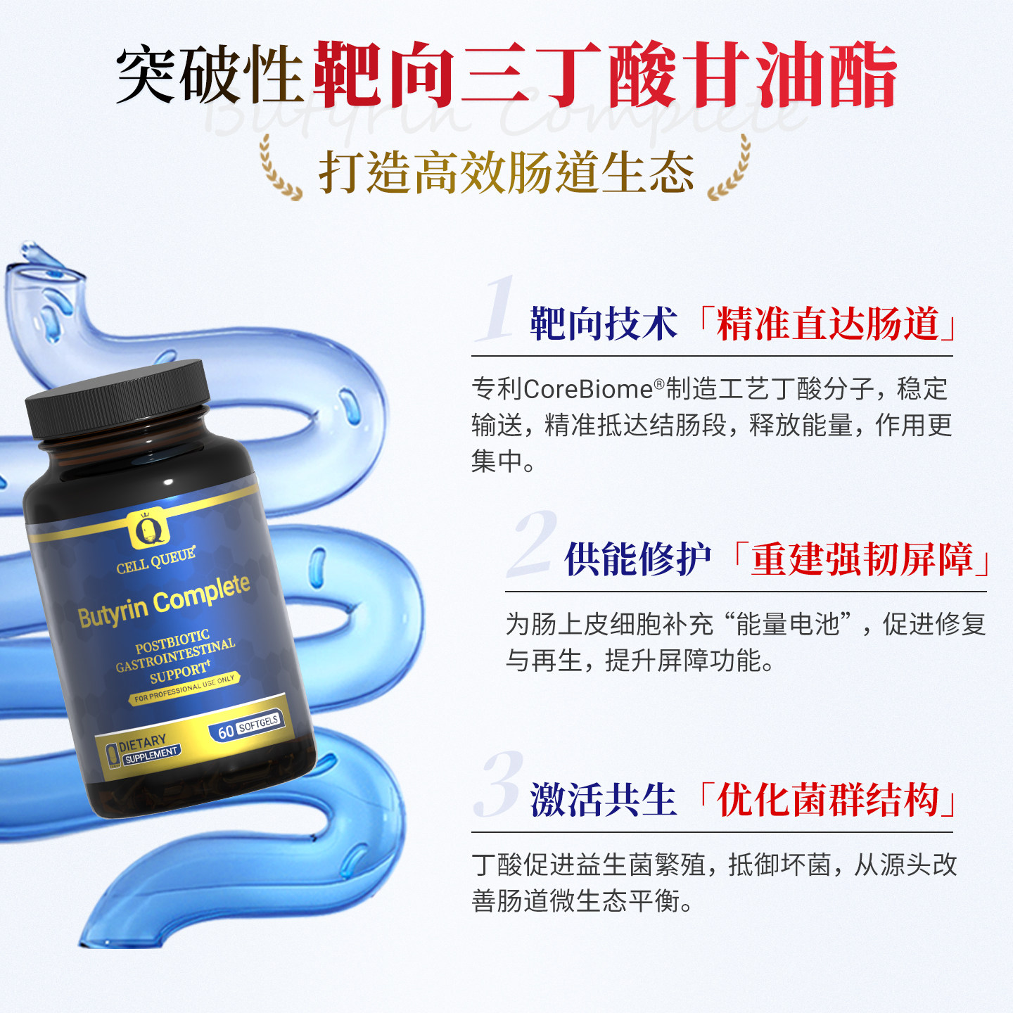 📚 优序CellQueue三丁酸甘油酯益生菌大人调理肠道易激征后生元胶囊
