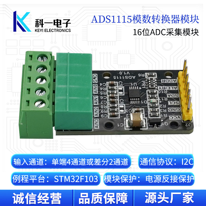 📚 ADS1115模数转换器 4通道高精度16位ADC数据采集模块 I2C通信