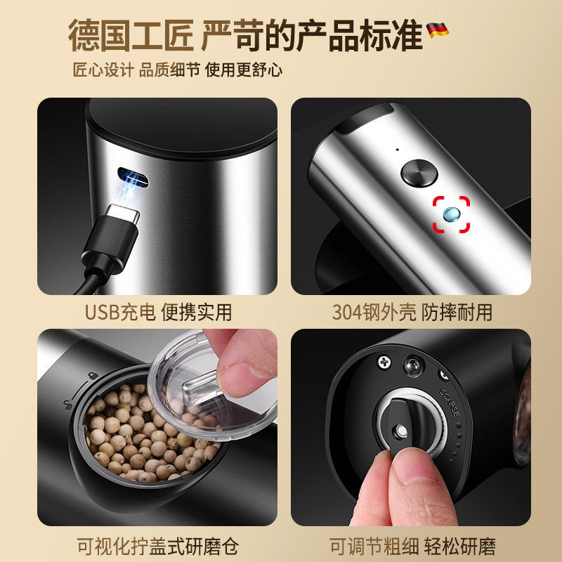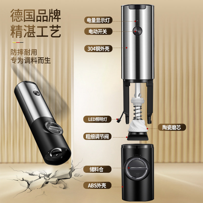 #304不锈钢 #胡椒研磨器 #电动现磨 #黑白胡椒粒 #花椒磨粉器 #粗海盐研磨瓶 #好物分享 #厨房神器